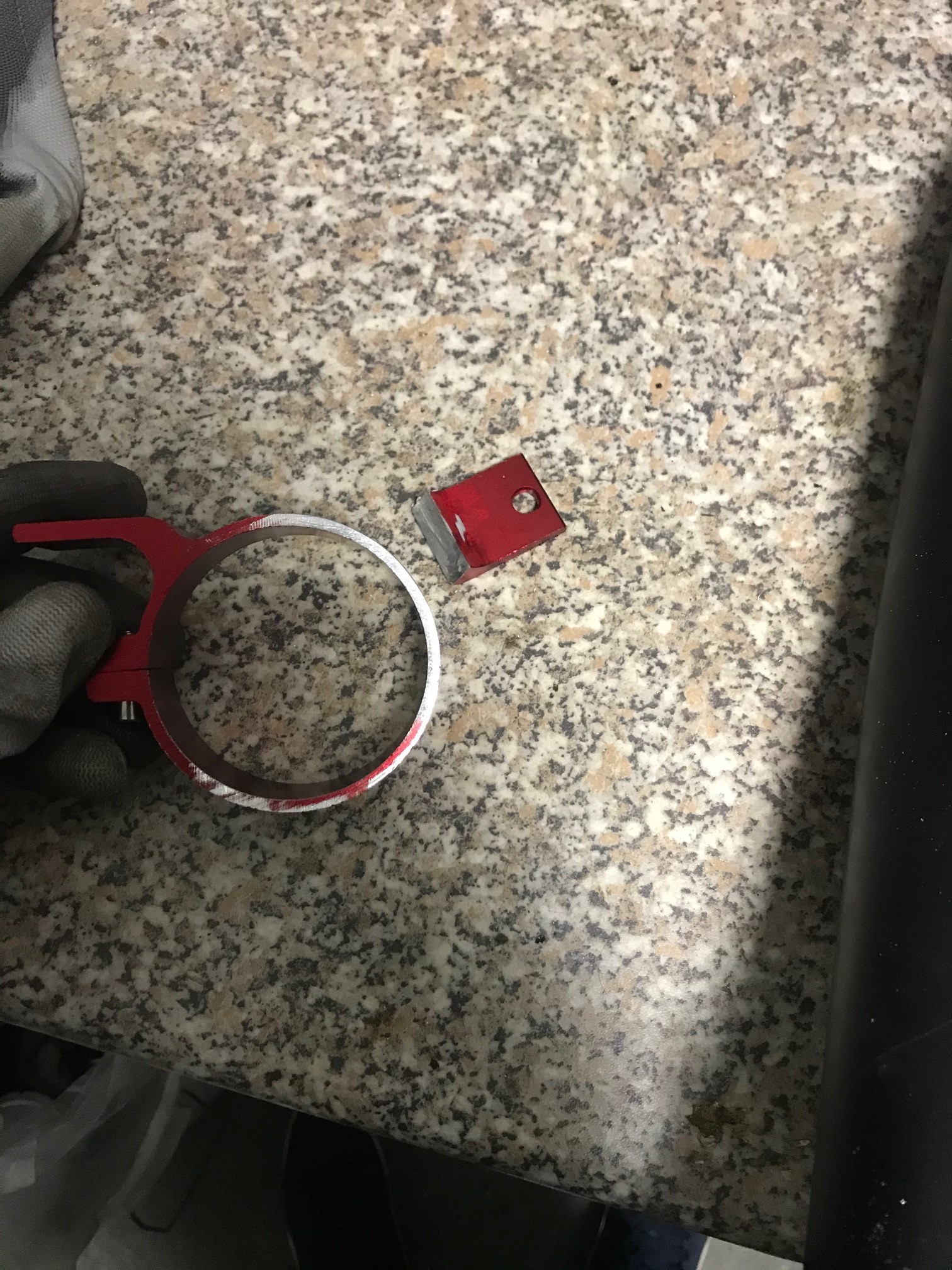 Dafür habe ich ein Universal Benzinpumpenhalter besorgt. Eine Befestigungslasche abgetrennt und verschliffen.