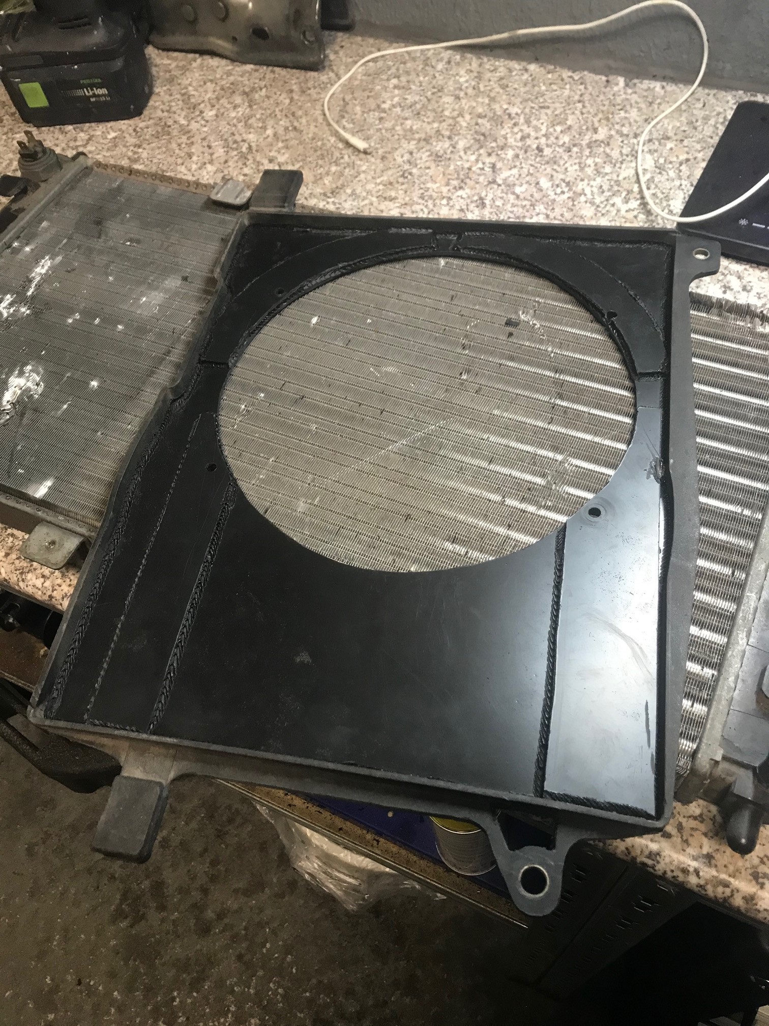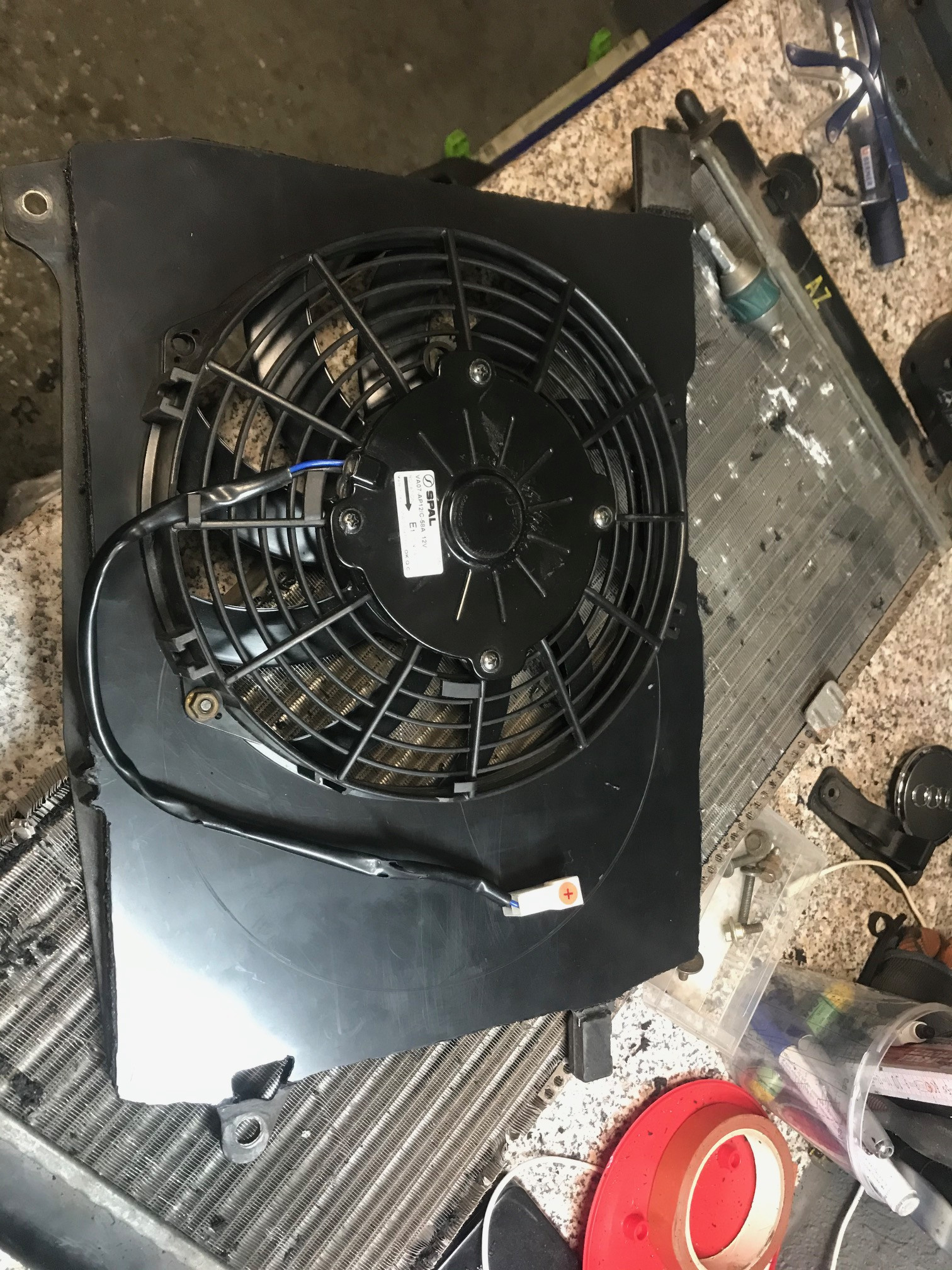 #345 Alles anzeigenHandwerklich interessant umgesetzt, aber ich glaube nicht das dein Kühler so die volle Wirkung entfalten kann, weil von der gesamten Kühlerfläche nur ein Bruchteil durchströmt werden kann, nämlich der Lüfterausschnitt. Der Rest vom Kühler ist verdeckt. Kühler Fahrtwind strömt von vorne ein und bleibt dann an deiner Lüfterzarge hängen, staut sich und blockiert somit die Kühlwirkung.