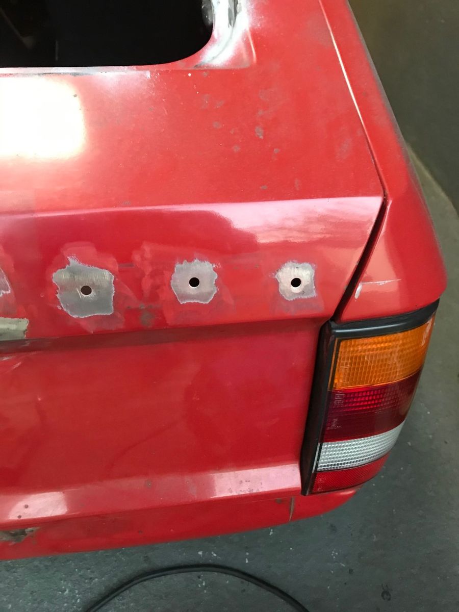 Hatte die Löcher für die Embleme und das Loch für den Scheibenwischer zugeschweißt. Hab die Stellen verzinnt und Anschließend verspachtelt.
