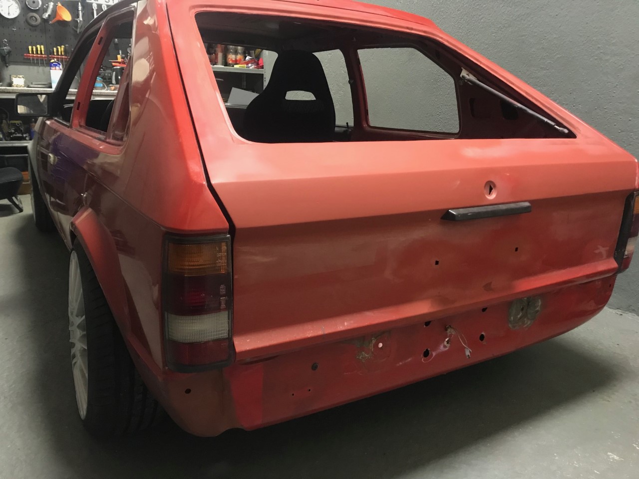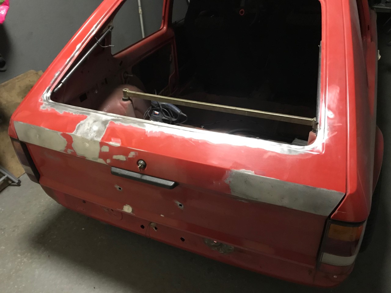 Die Heckklappe hatte durchrostungen am Fensterrahmen. Diese habe ich zugeschweißt.