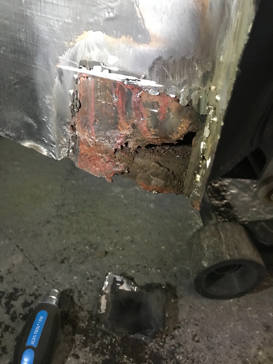 Unten drunter sah es dann entsprechend aus. Mann hätte wenigstens die rostigen Bereiche raustrennen können.
