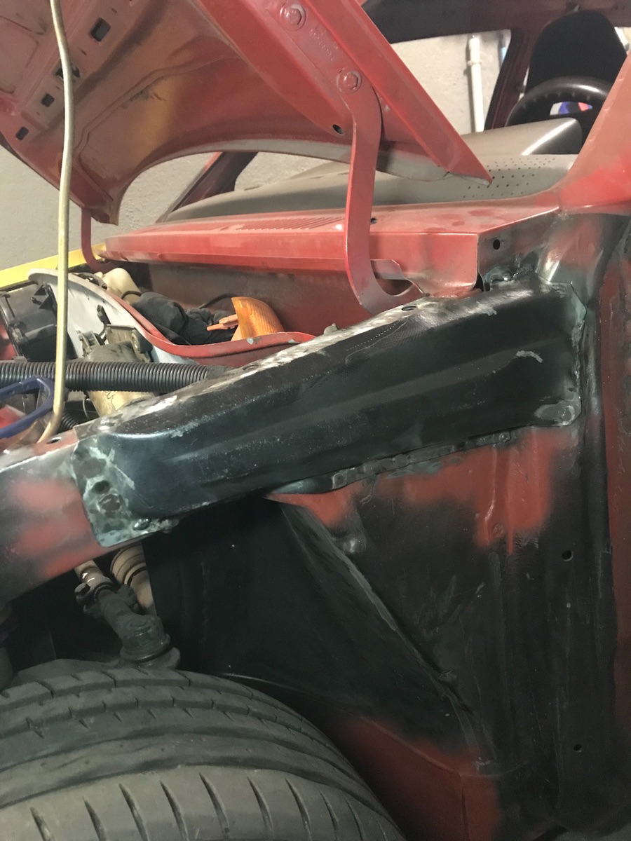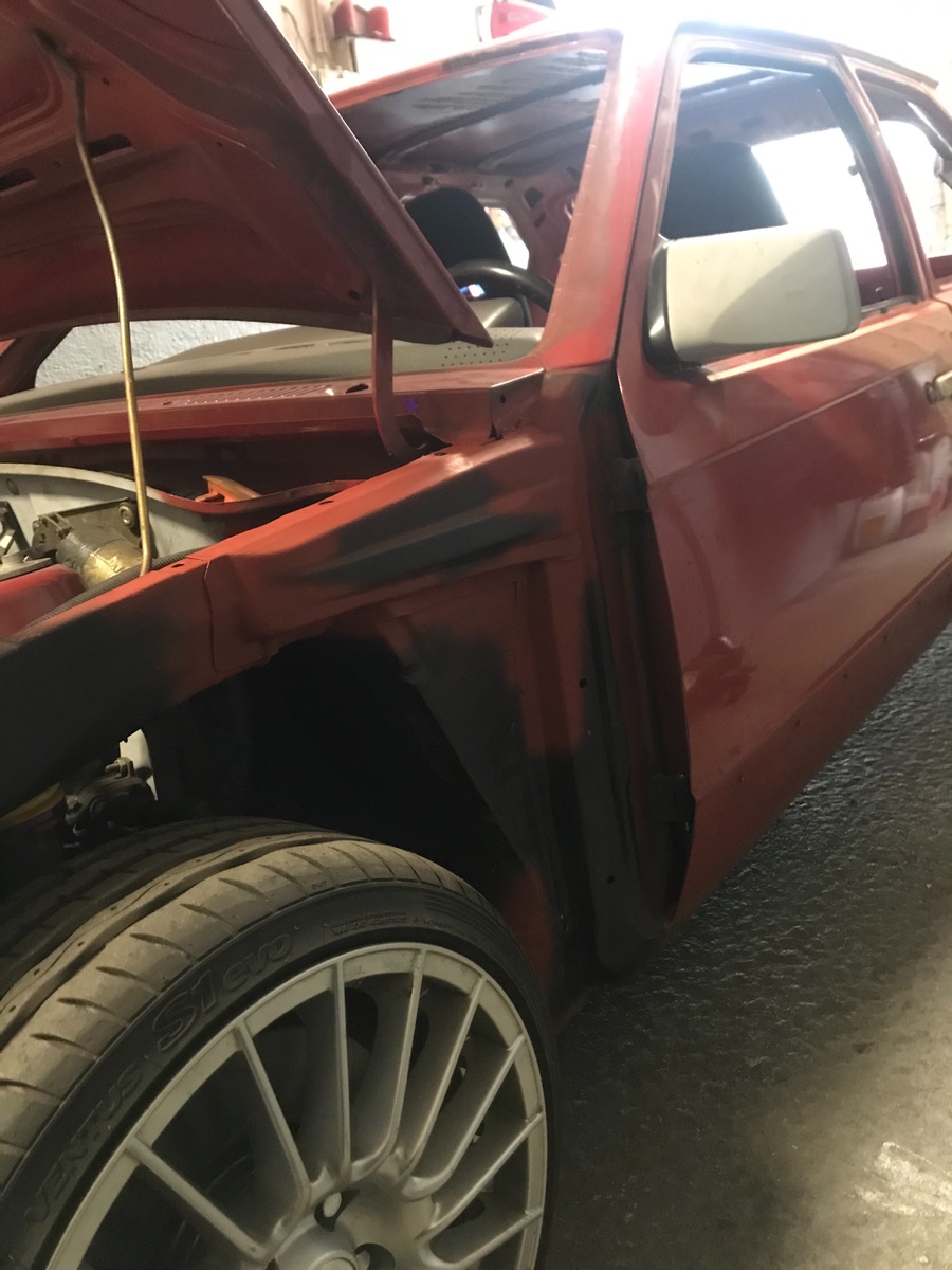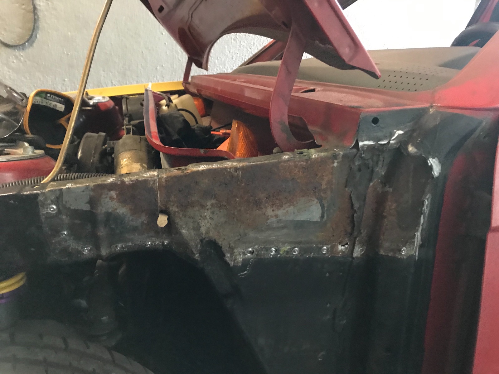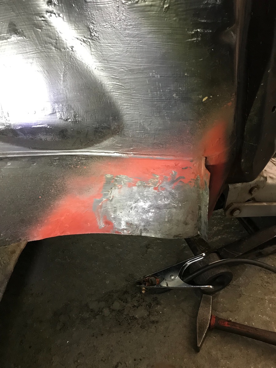 Die ganzen Schweißpunkte im Radhaus habe ich verschliffen. Der Radlauf links ist schonmal fertig.