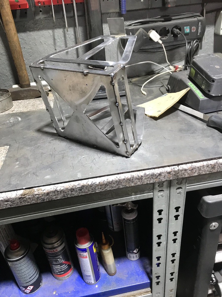 Hier mal ein Bild was ich zwischendurch gemacht habe. Dort kann man sehen, dass ich das Innere Blech mit Clecos fixiert habe.
