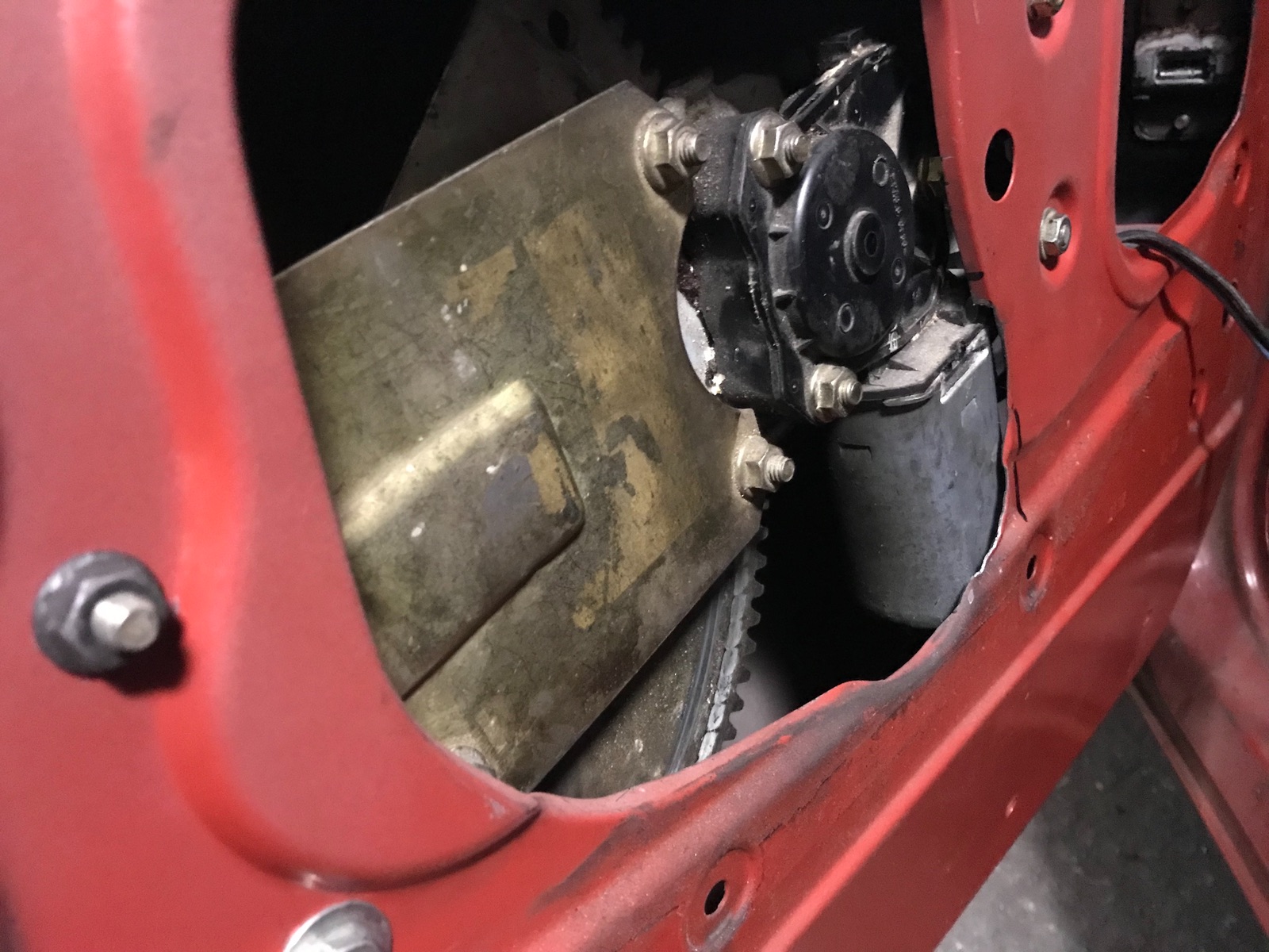 An der Tür selbst muss man nicht viel machen. Nur der Motor an sich stößt etwas an. Da ich die Tür nicht brauche habe ich die Stelle etwas weggeschnitten und aufgebogen.