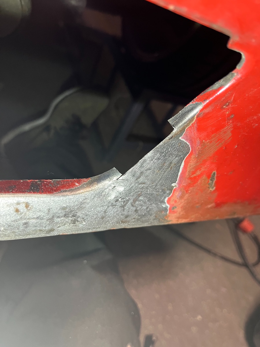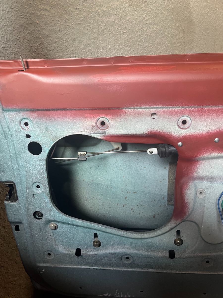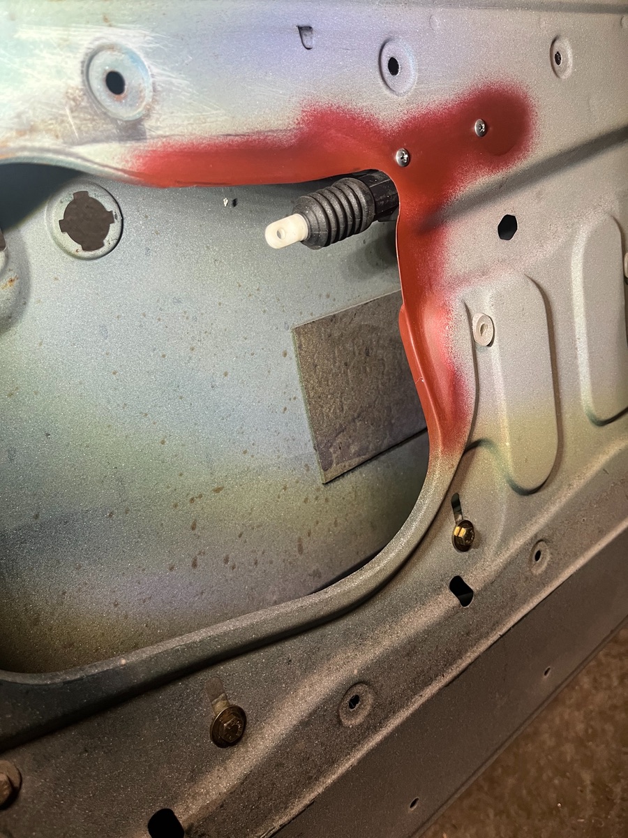 Die neue gebrauchte tür hatte etwas Flugrost auf der Außenhaut durch tiefe kratzer angesetzt. Habe die Stellen blank gemacht und mit Rostschutz erstmal lackiert.