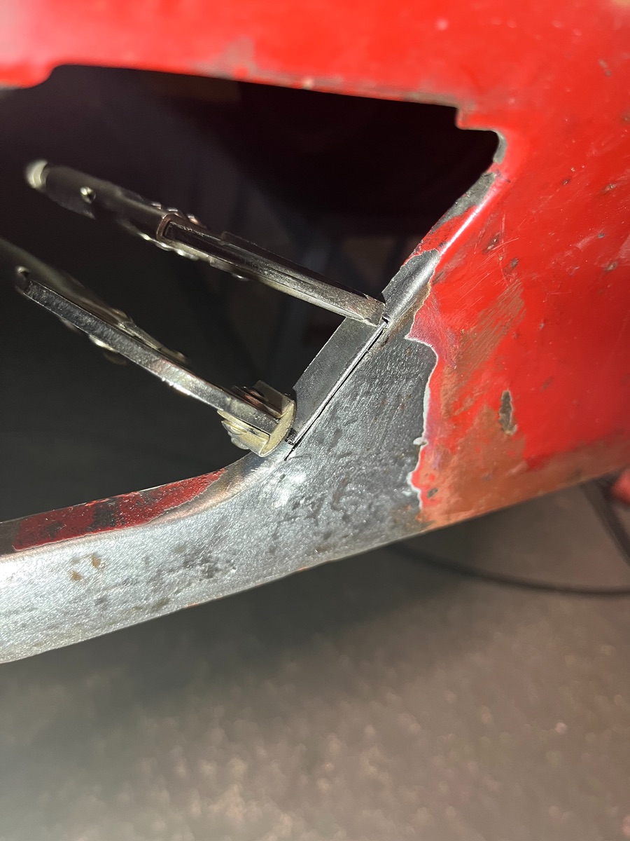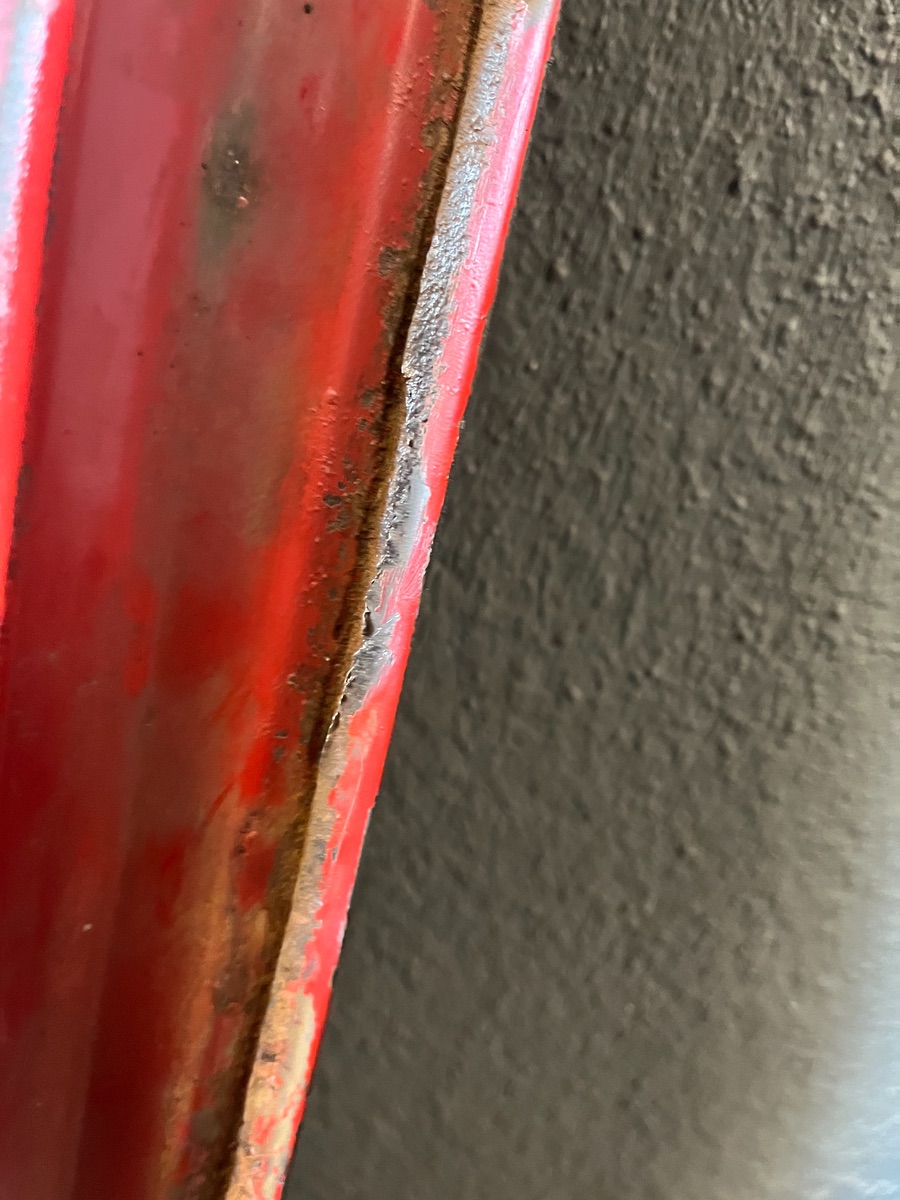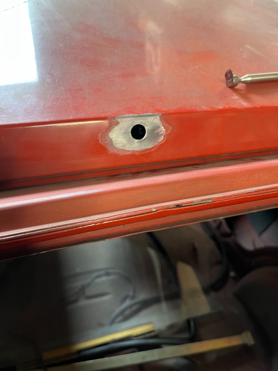Die neue gebrauchte tür hatte etwas Flugrost auf der Außenhaut durch tiefe kratzer angesetzt. Habe die Stellen blank gemacht und mit Rostschutz erstmal lackiert.