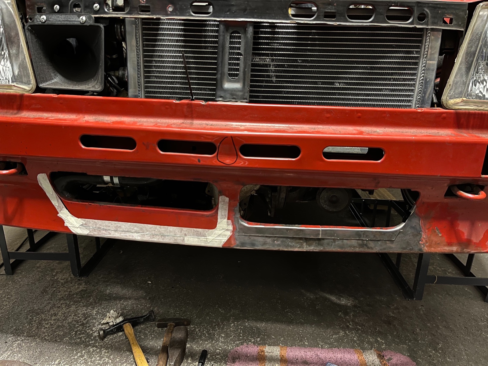 Nachdem ich es heile draufbekommen habe ist mir die Front aufgefallen. Die total krumm ist. Wollte egtl erst dran wenn der Motor draußen ist. Aber so auf den Auffahrrampen kam ich sehr gut dran.