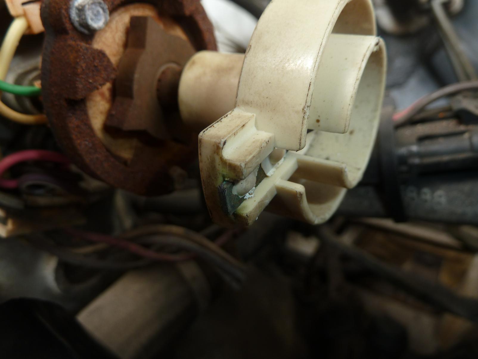 Also die "Blackbox" ist dieser kleine schwarze Kasten der hinten am Verteiler mit den 2 Schrauben befestigt ist,da wo der Kompaktstecker mit den Kabeln rangeht.Die regelt u.a. das was früher die Unterbrecherkontakte,die Fliehkraft und Unterdruckverstellung getan hat. Sehr gut auf den Bilder zu sehen.Wenn da wissentlich keiner rumgespielt hat,alles gut.