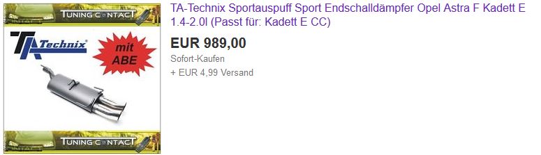 gebraucht gibts kaum was brauchbares, also mal durch die bucht gestöbert, da sieht man teils endschalldämpfer für 1000 euro von TA... bastuck anlagen für 700-800 euro. hab ich irgendwas verpasst oder sind die preise wirklich so explodiert das man für das geld eines kadetten nun ne abgasanlage kaufen muss?