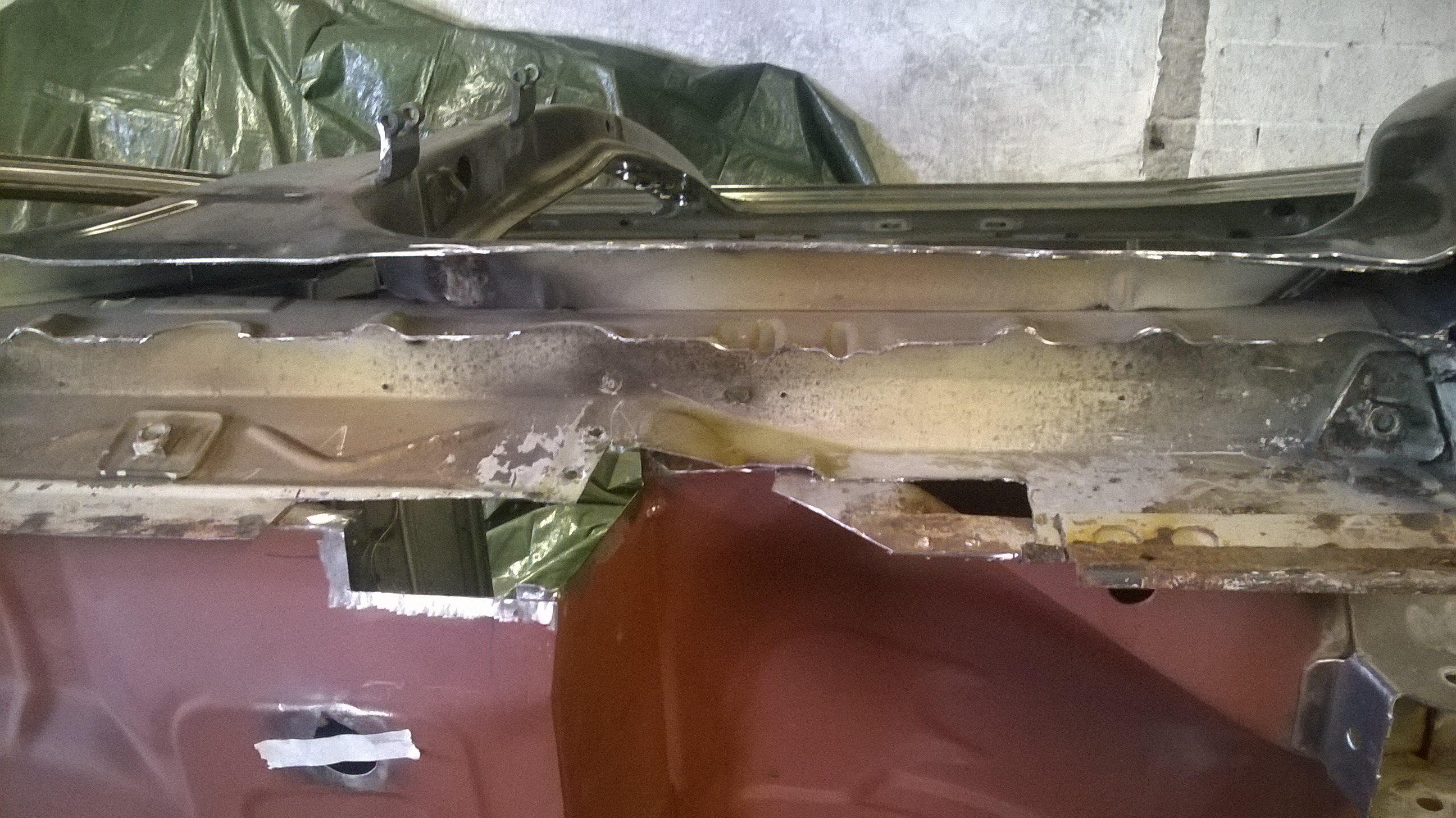 Wie macht ihr das runter ? Und vor allem mit was ? Anscheinend läuft das Zink Richtung Schweißpunkt, obwohl ich 2 cm davon weg bin.2, Gibt es ein Blech vom Übergang Schweller zur Seitenwand ?