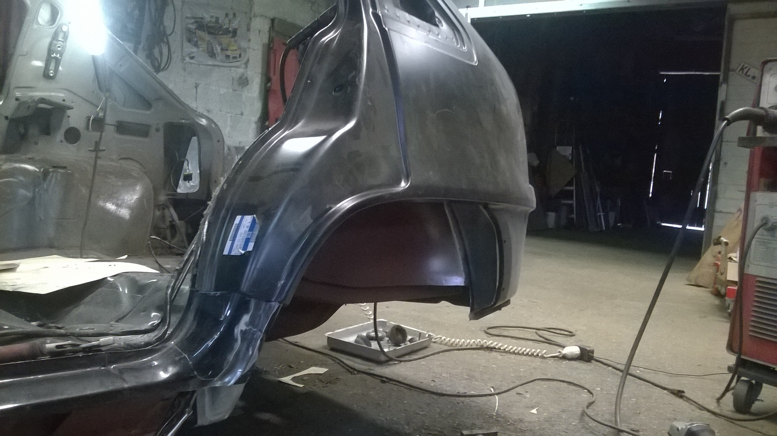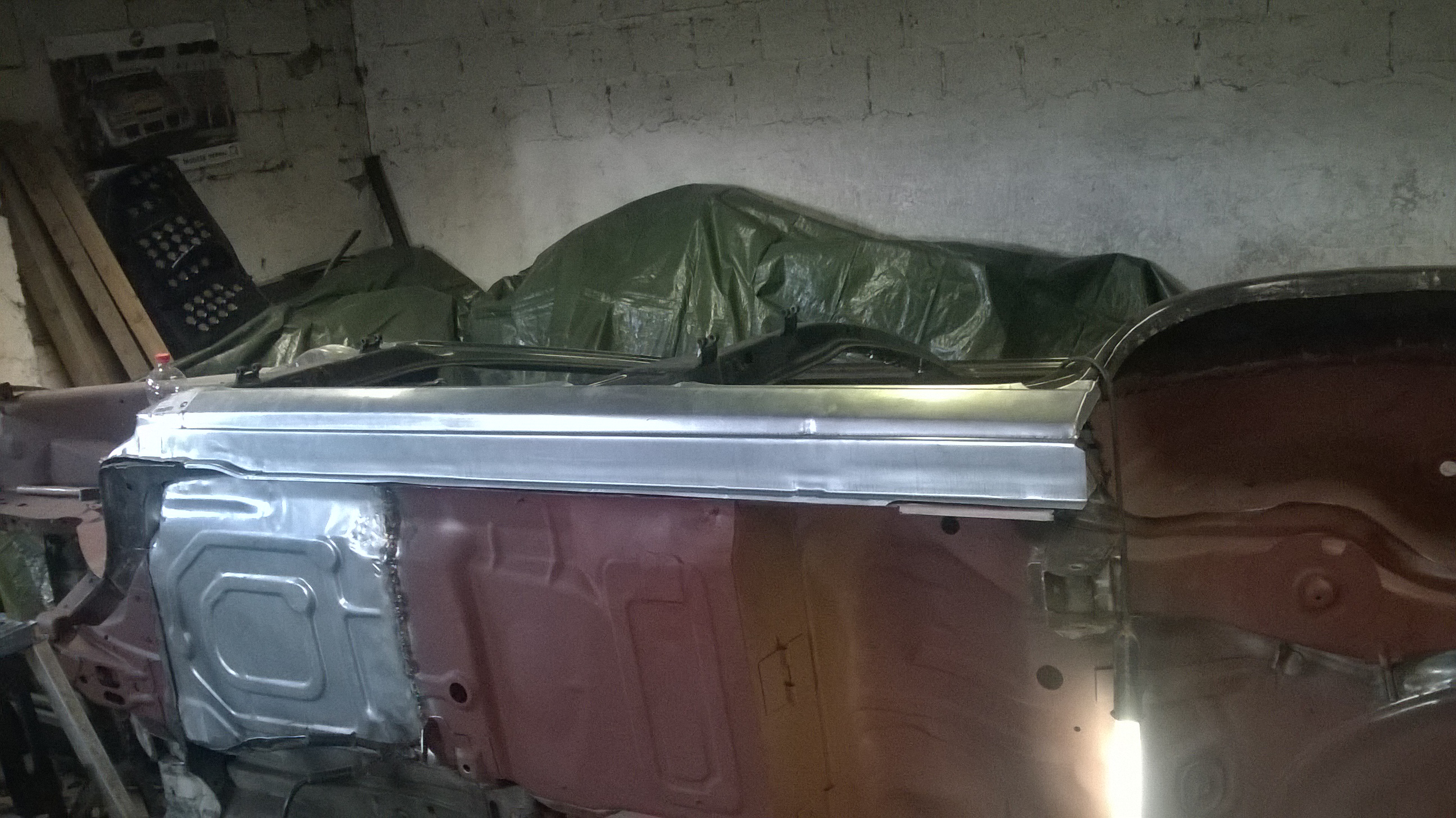 Leider hatte die Zeit heute nicht mehr gereicht um die Seitenwand noch einzusetzen.Das hintere Teil der Endspitze hatte heute zu lange aufgehalten, da auch noch mehr Blech drumherum in mitleidenschaft gezogen war in Sachen Rost.