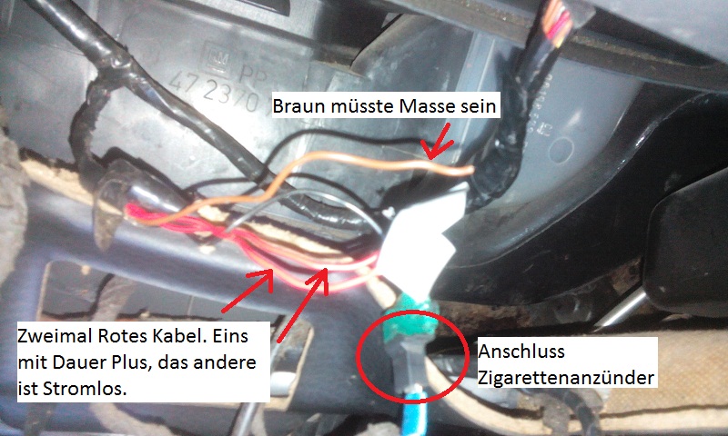Hab heute meine Verkleidung ausgebaut von der Mittelkonsole ausgebaut und hab folgende Kabel unter einem Isolierband gefunden. Der Kabelstrang liegt gleich neben dem vom Radio. Das eine Kabel geht zum Zigarettenanzünder aber die anderen kann ich nicht zuordnen wofür diese sind.