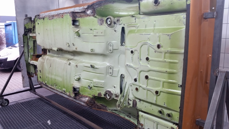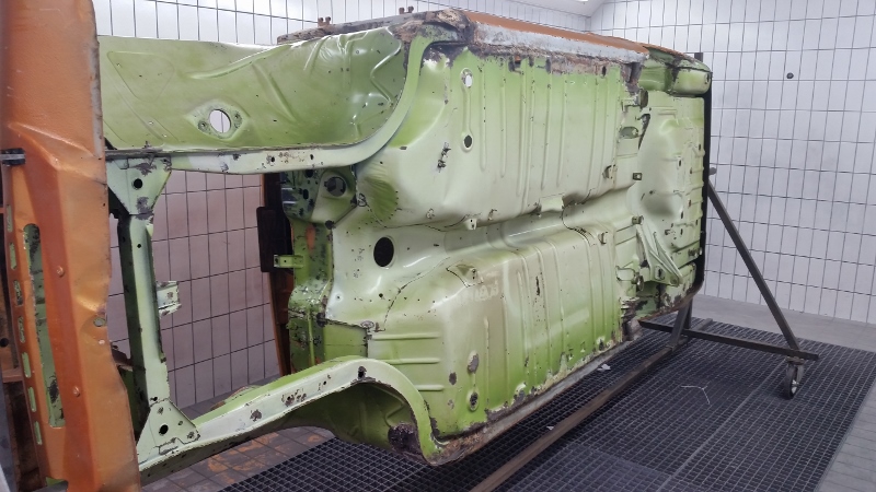 Wenn man dann das blanke Blech hat, grundiere ich immer mit einer EP-Grundierung, bevor ich den weiteren Lackaufbau, egal ob es nun U-Schutz ist, oder was anderes.