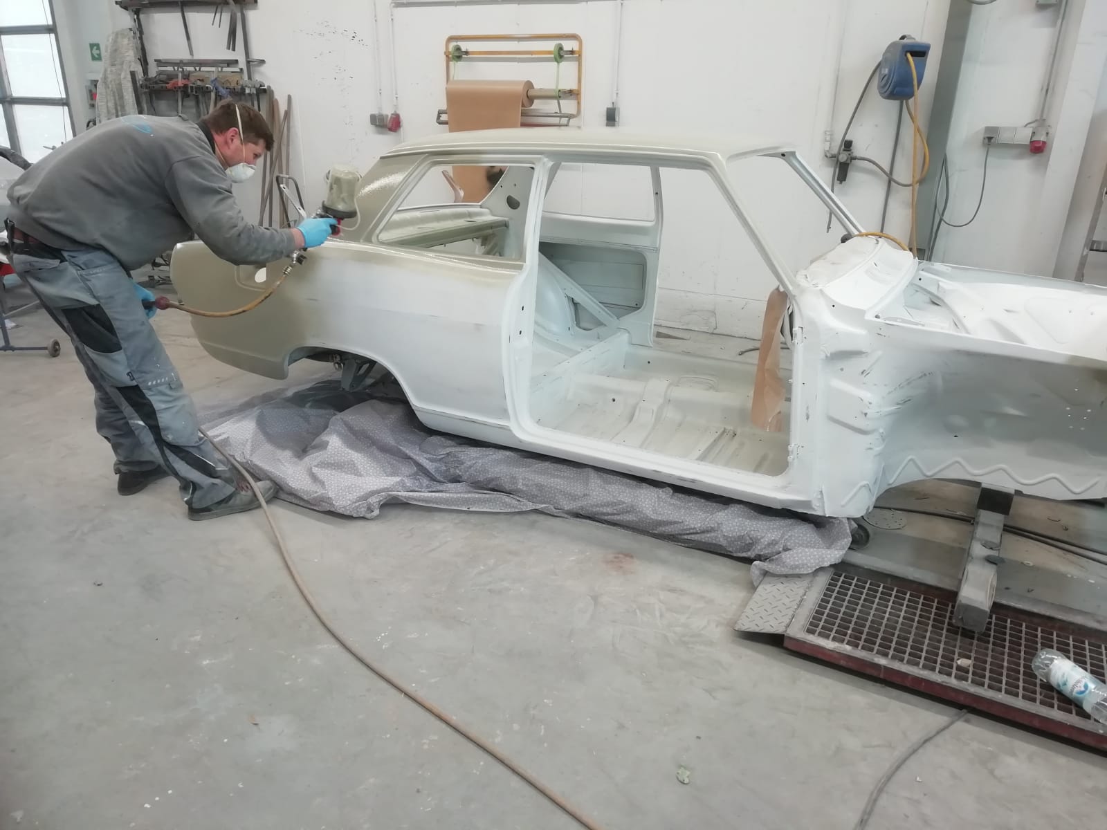 Lack auf alten Teilen komplett abgeschliffen, Epoxi Grundiert und schon mal angefangen zu spachteln, wenn nötig...