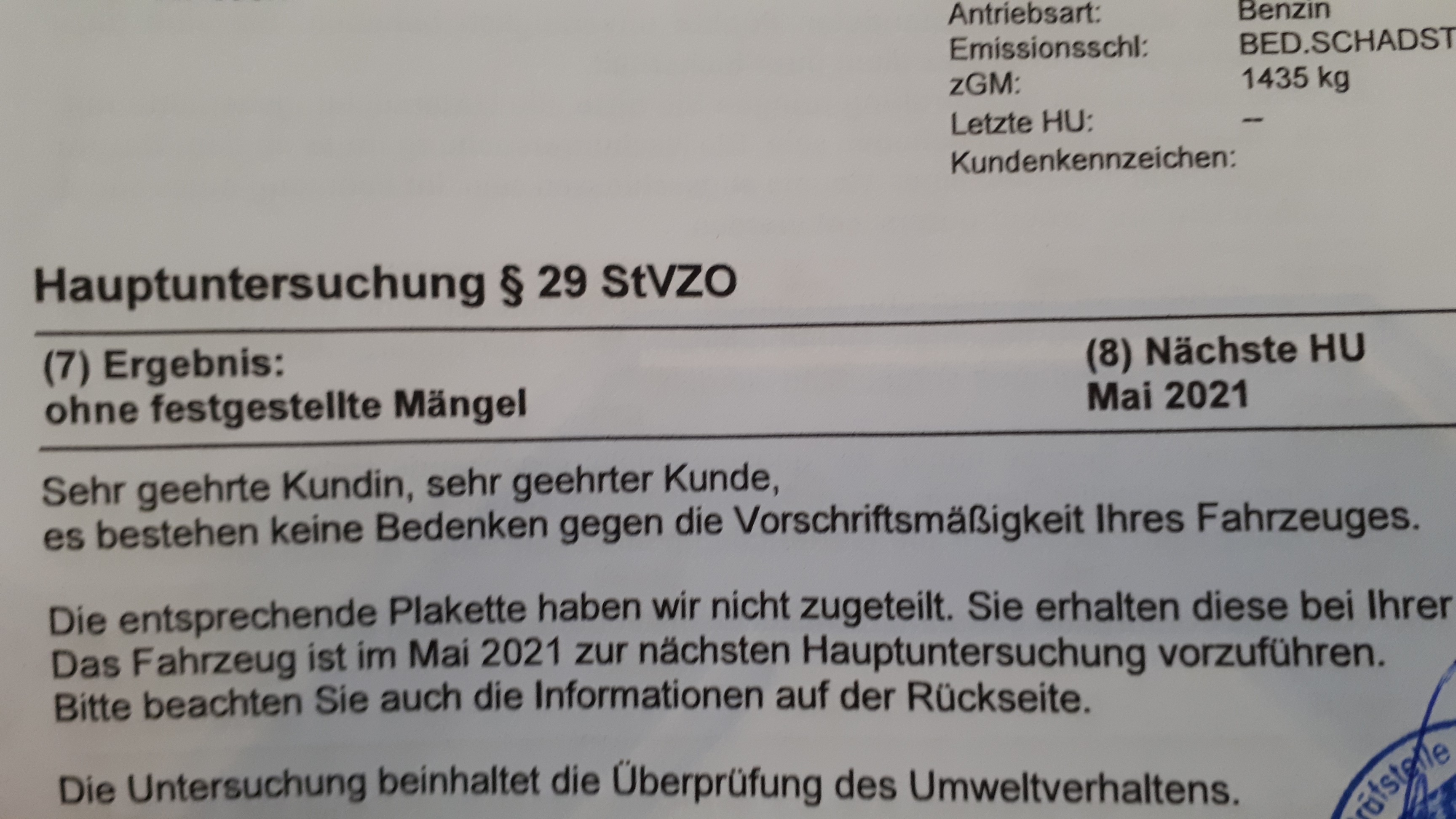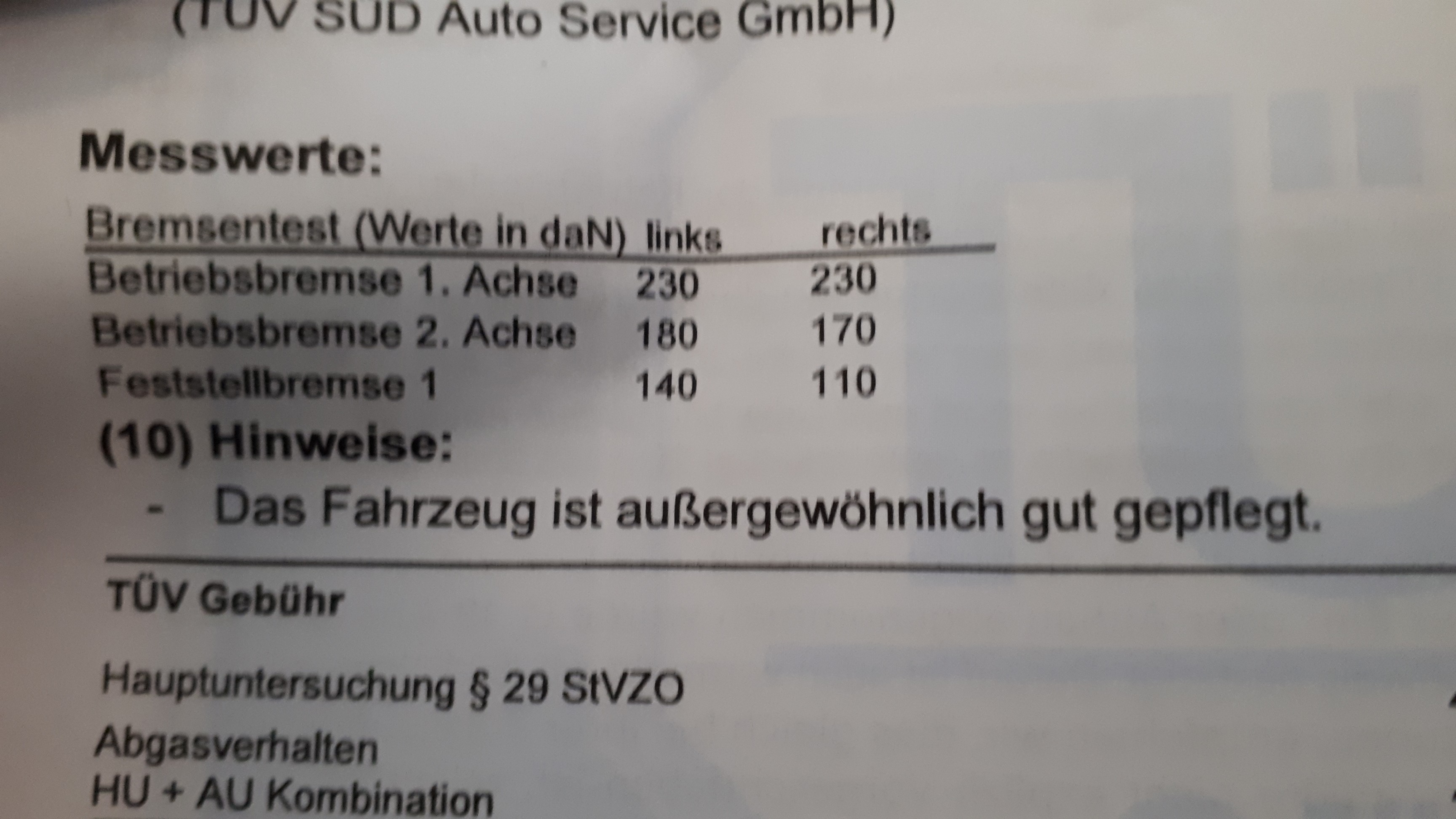 Dann noch der Vermerk im Tüvbericht unter Punk (10) Hinweise: -Das Fahrzeug ist außergewöhnlich gut gepflegt.