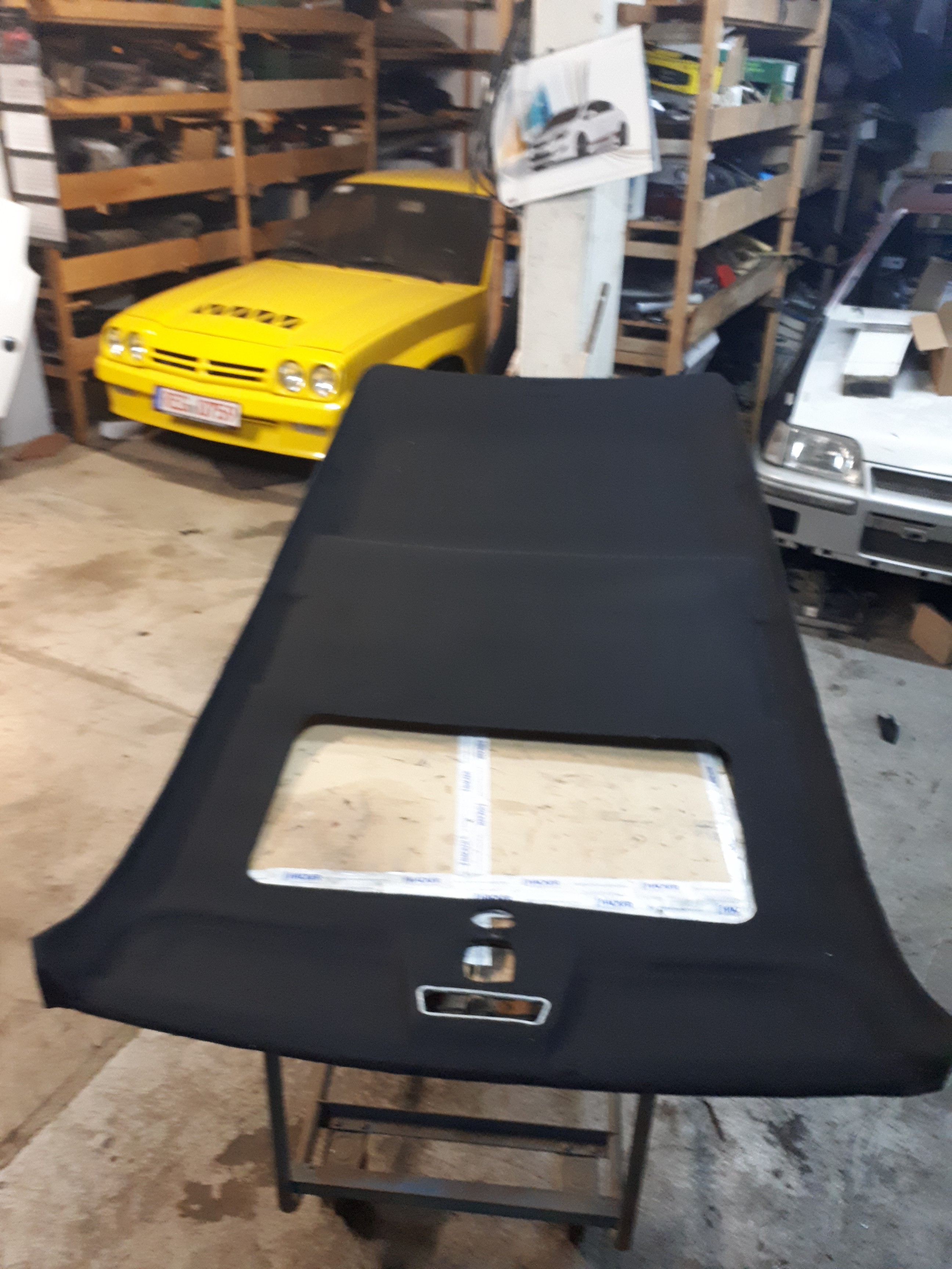 Da sich mein Himmel schon gelöst hat an mehreren Stellen habe ich ihn mit schwarzen stoff neu bezogen.Fehlt noch das teil zum zuschieben in schwarz.Sonnenblenden hab ich schwarze vom astra f cabrio und alles andere was grau und aus Kunststoff ist wird schwarz lackiert.Die woche urlaub hab ich gut nutzen können.