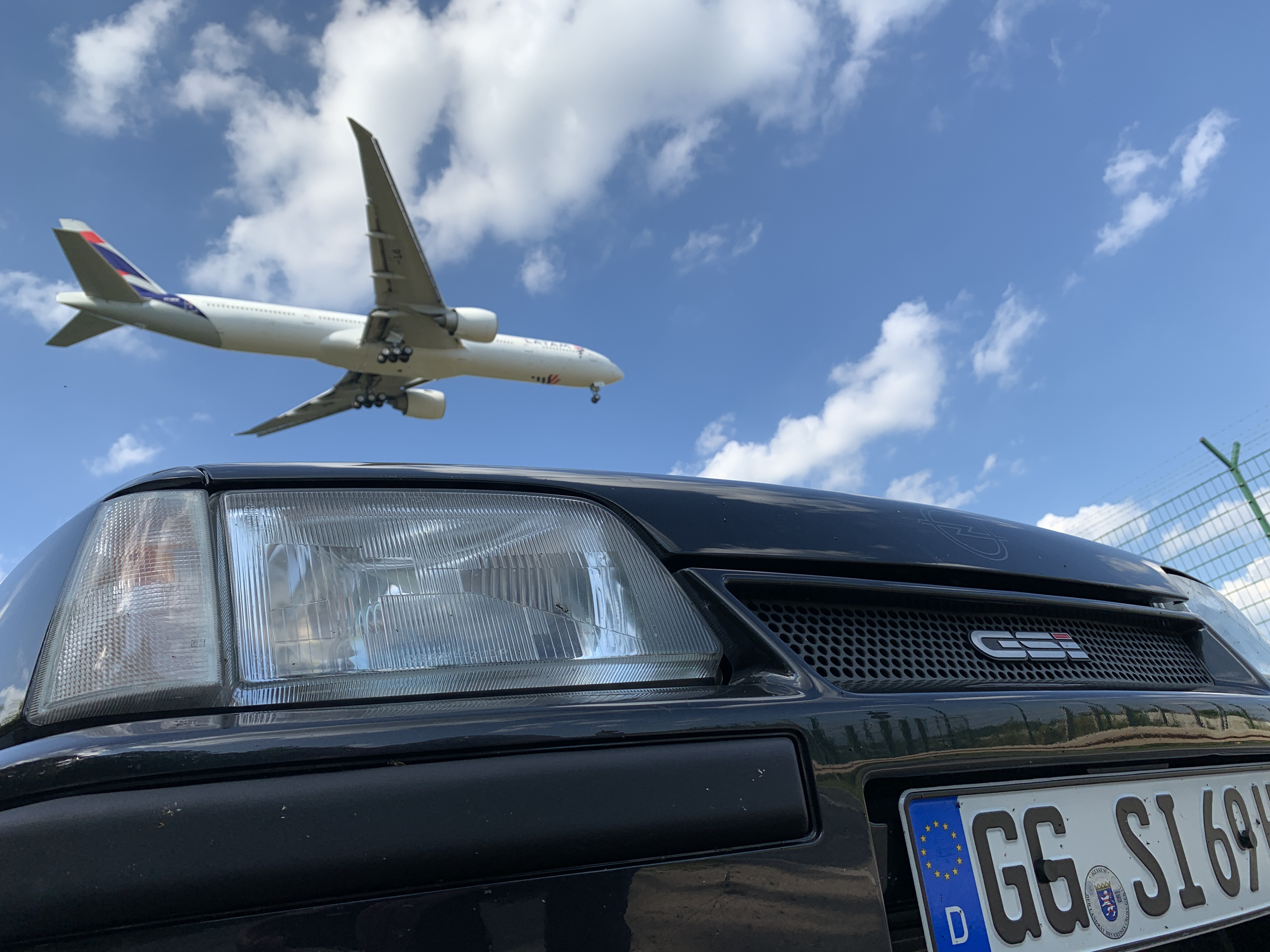 nachdem ich leider längere Zeit nicht fahren konnte, bin ich letzten Sonntag endlich mal wieder los. Endlich mal wieder ein Auto fahren und kein rollendes iPad mit Soundgenerator, und bei dem man beide Hände und Füße braucht ! Aber da die üblichen "Teststrecken" irgendwann mal langweilig werden, wußte ich eigentlich nicht mehr wohin noch zu fahren. Und da wir hier, je nach Wind und Wetter, dem Fluglärm von Frankfurt eh zwangsausgesetzt sind, hab ich mal nachgesehen, obs nicht auch eine nette "grüne" Landstraße zum Frankfurter Flughafen gibt. Dann könnte ich mir da vielleicht wenigstens auch mal ein paar Starts oder Landungen ansehen, wenn ich dem Lärm eh nicht ausweichen kann. Habe dann Nähe "Parkplatz Südbahn" parken können und mußte natürlich ein paar Fotos machen. Leider kann ich keine iPhone-"Live"-Fotos mit Ton hochladen (.mov), aber egal. Und damit gings auch weiter mit dem Opel-Motto :