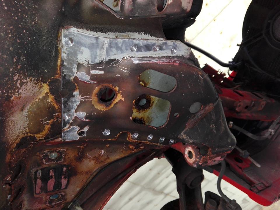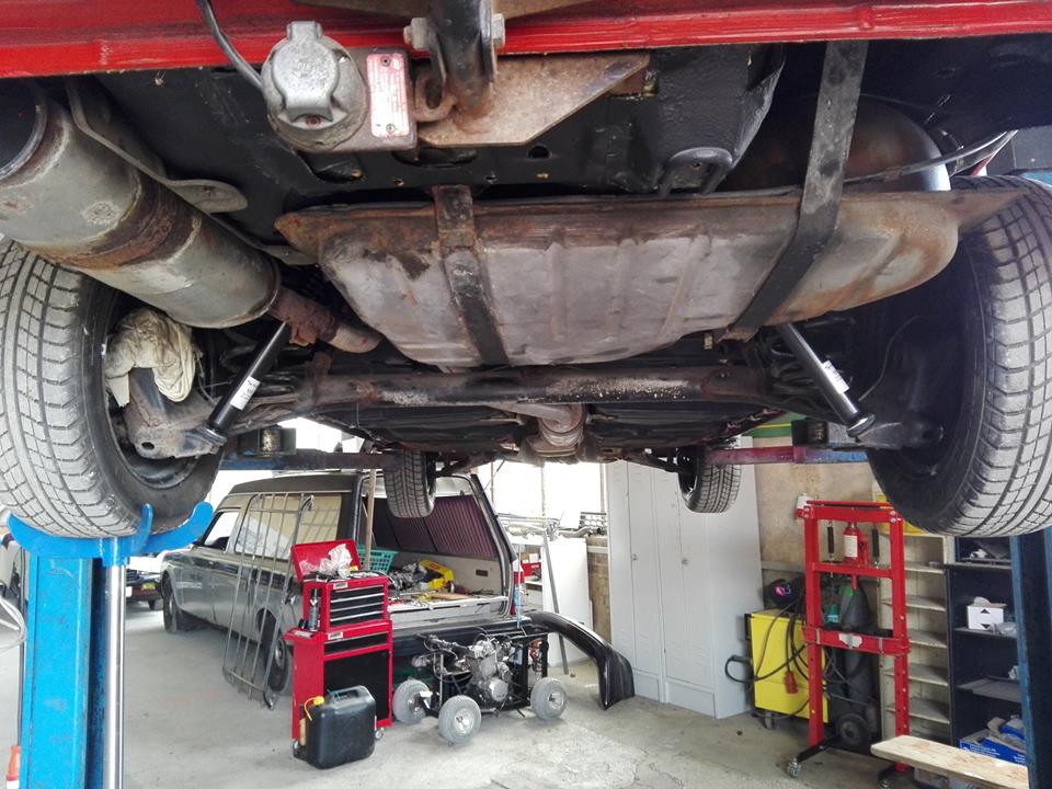 Für den TÜV fehlen nach einer ersten flüchtigen Inspektion die hinteren Dämpfer, Querlenkeraufnahme schweißen (Rep. Blech liegt im Kofferraum) und wieder zusammenbasteln.