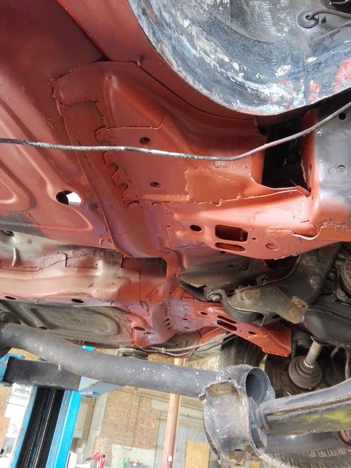 Teilzerlegt, da schon einiges dran geschweißt wurde! U.a. Radläufe, Endspitzen, Schweller, Radhäuser usw. steht bis auf die Querlenkeraufnahme und eine Stelle am Scheibenrahmen/Dach top da, läuft und einen ganzen Kofferraum voll Teile gab's noch mit dazu.