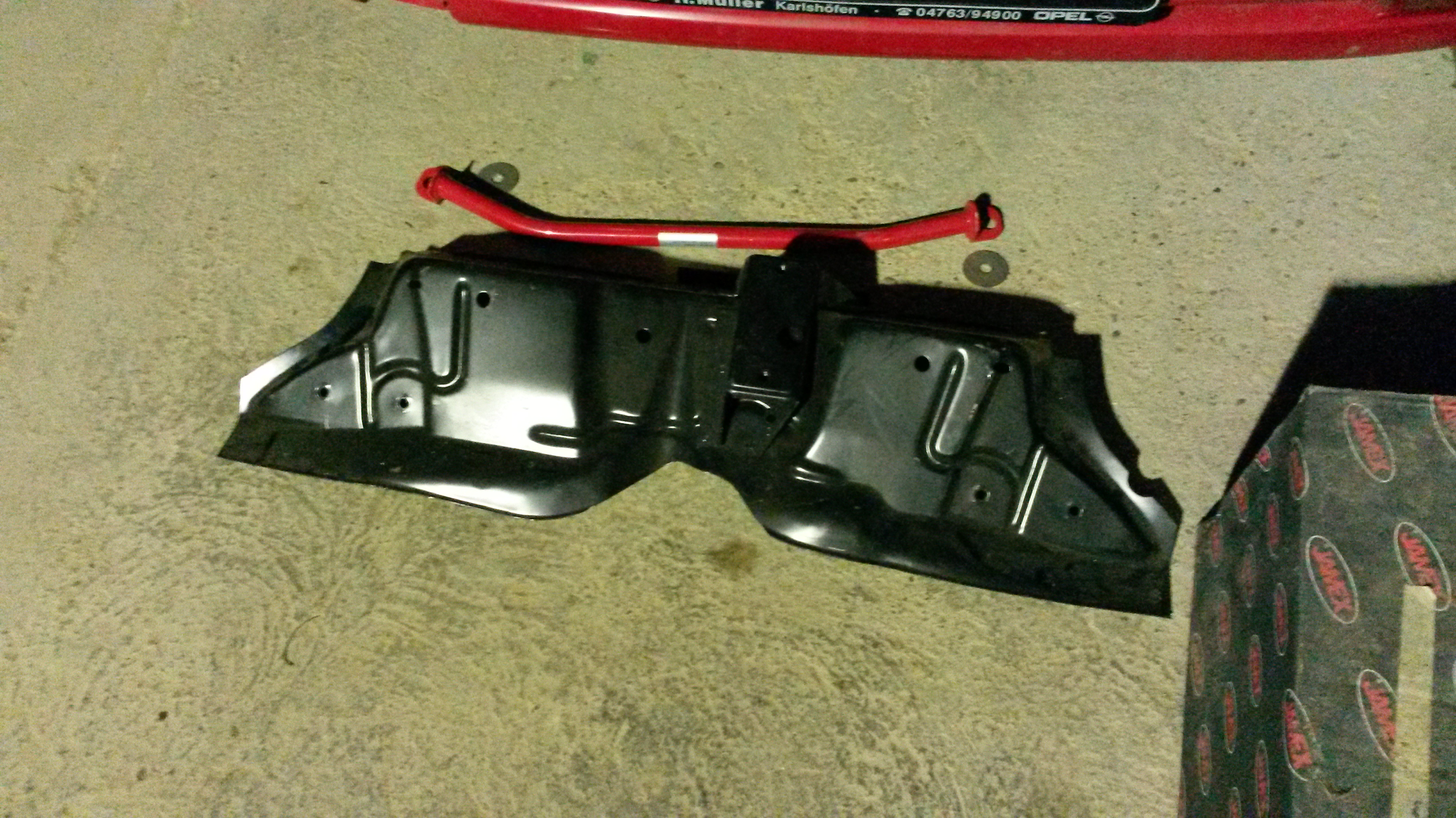 Original GM Blech lag im Auto, die Wiechers Strebe hatte ich noch in der Garage liegen