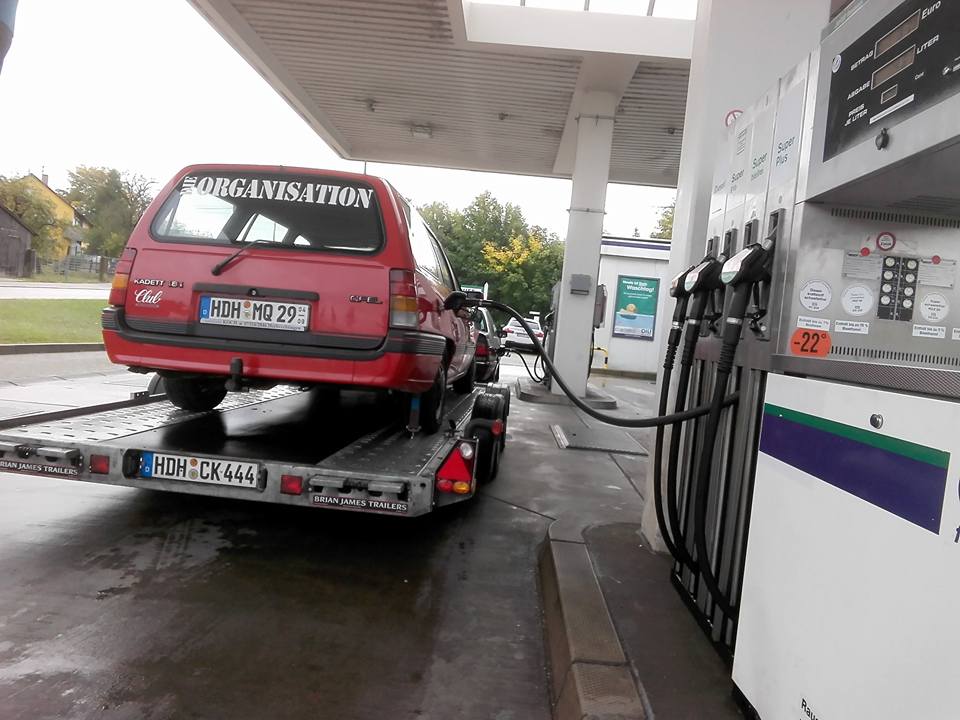 Natürlich vorbildlich mit dem Hänger geholt, da wir mittlerweile Oktober hatten und doppelt vollgetankt, der Tankwart war erstaunt wie man für 165 EUR tanken kann