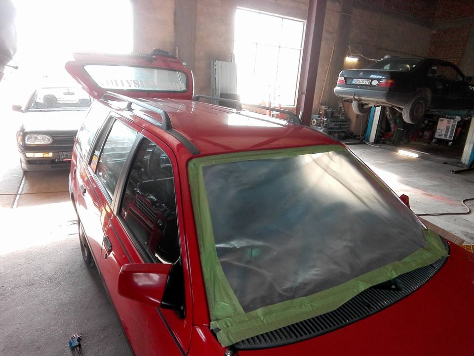 Und da ich ja sowieso gar kein Geld reinstecken wollte, sondern einfach nur mal fahren, wurde natürlich noch das Dach lackiert