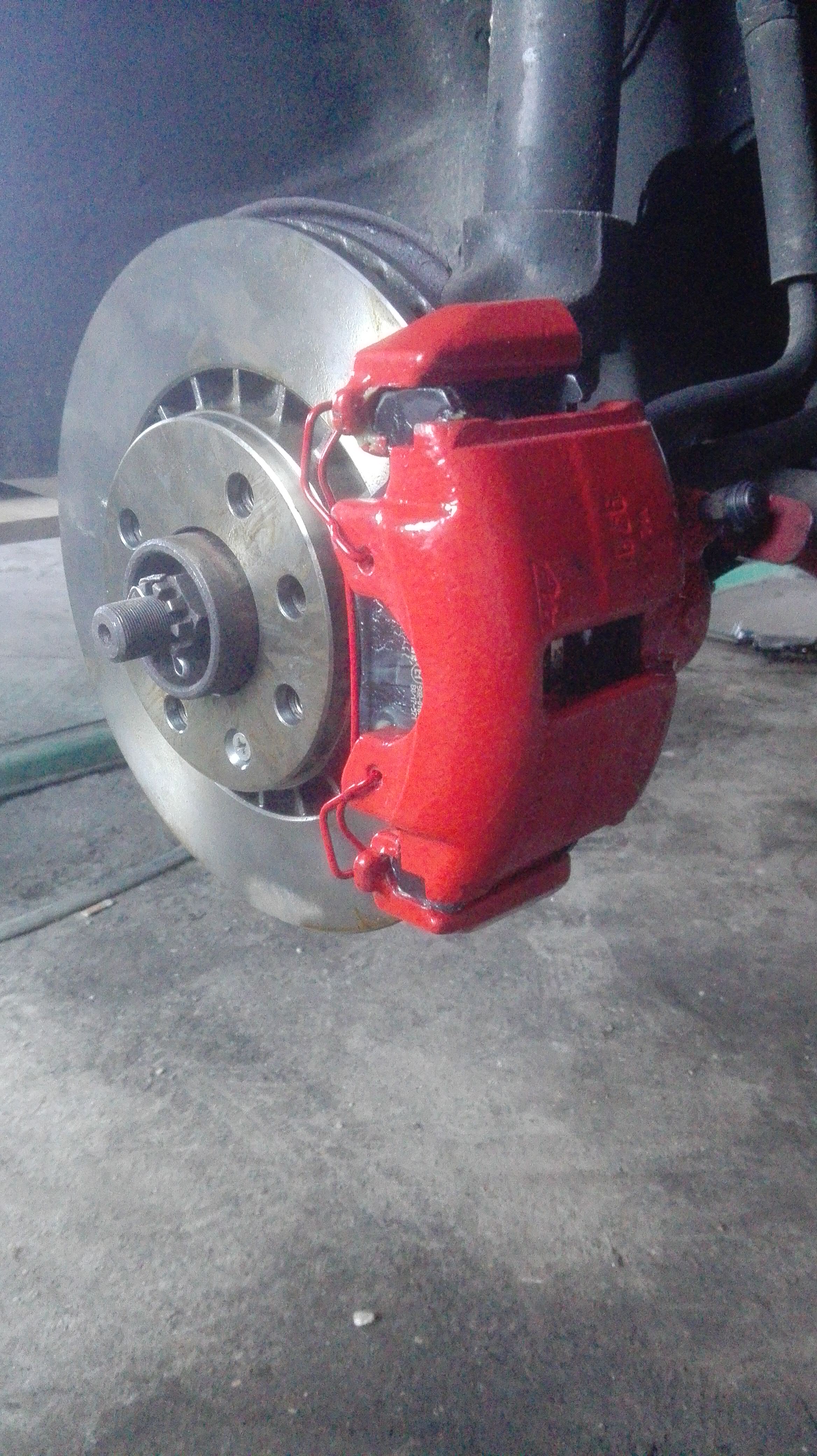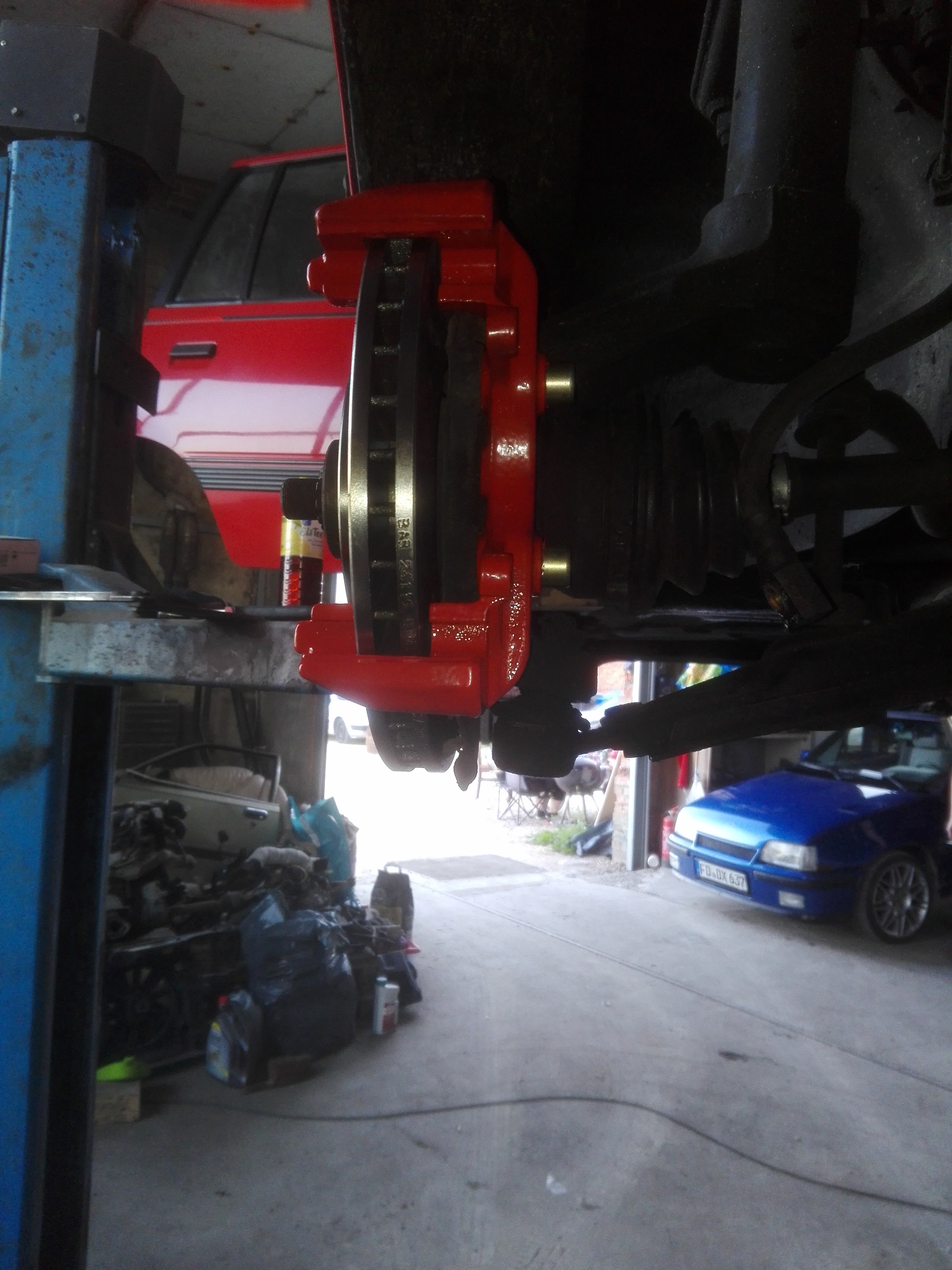 Nachdem ich bei jedem Schaltvorgang enormen Geschwindigkeitsverlust zu vermelden hatte und beim Stopp an der Ampel Rauch aus dem Radhaus aufstieg, gings doch schneller an den Umbau auf 16V Bremse, wie ursprünglich geplant.