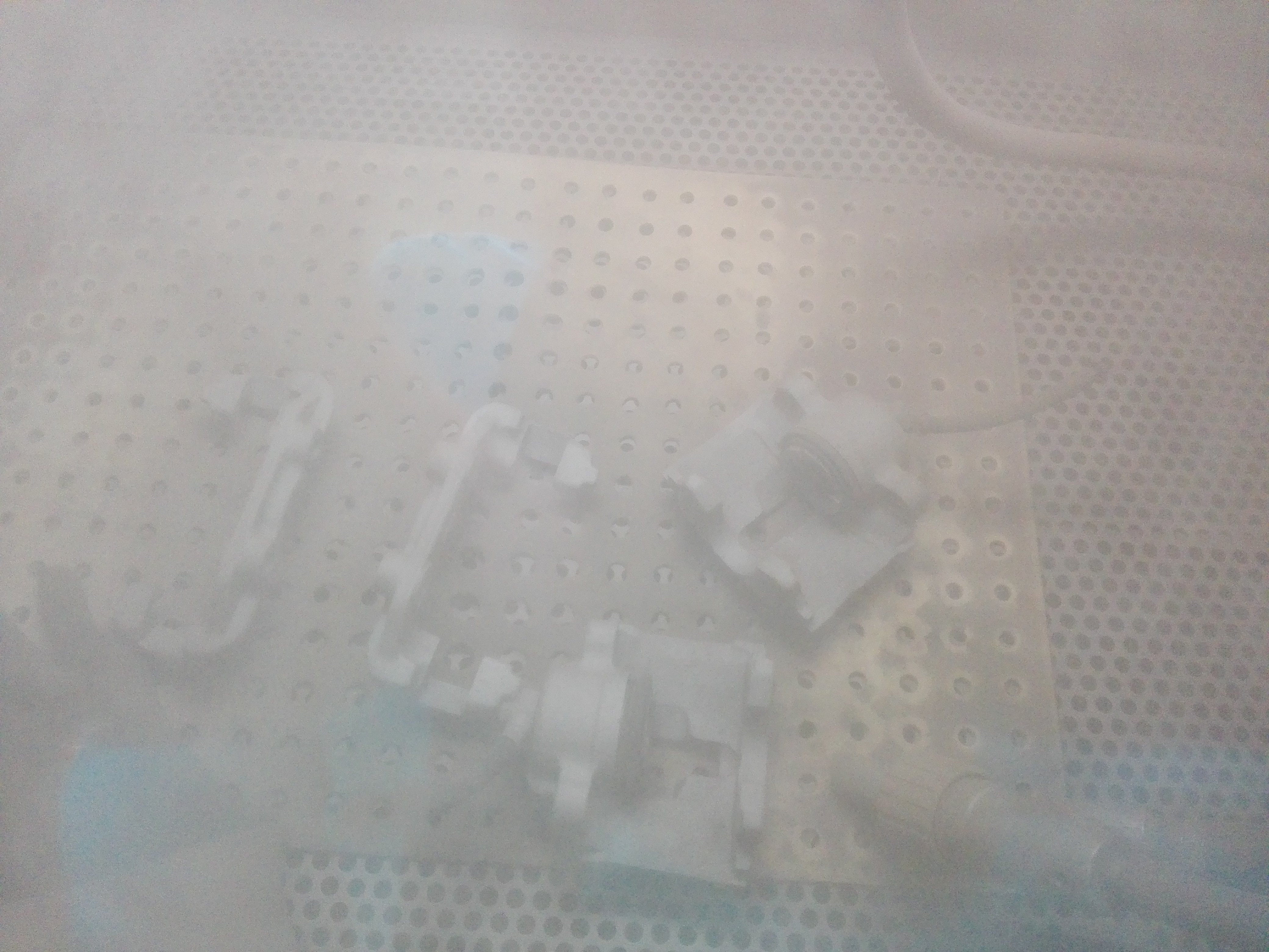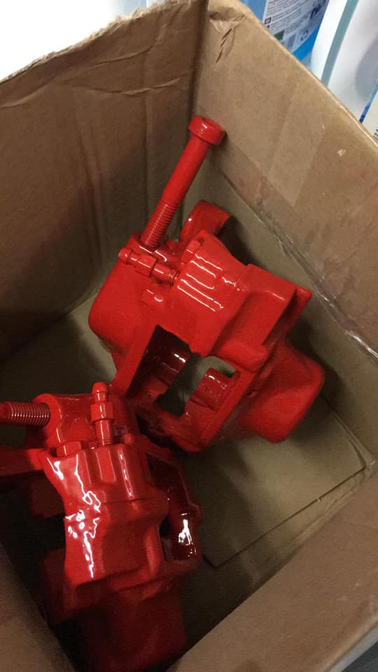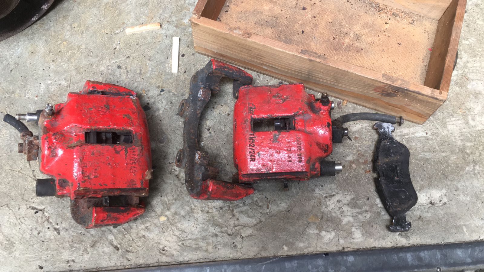 Glücklicherweise konnte ich schnell Sättel mit Trägern auftreiben, dann habe ich sie sandgestrahlt und meinem Kollegen zum Pulverbeschichten mitgegeben.Nun habe ich zum ersten mal selbst Bremssättel mit einem Rep.-Satz überholt. Ging einfacher wie, vermutet, auch wenn mich die Staubschutzmanschetten den letzten Nerv gekostet haben.