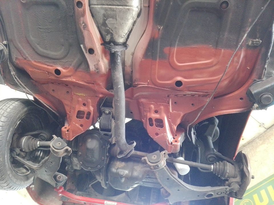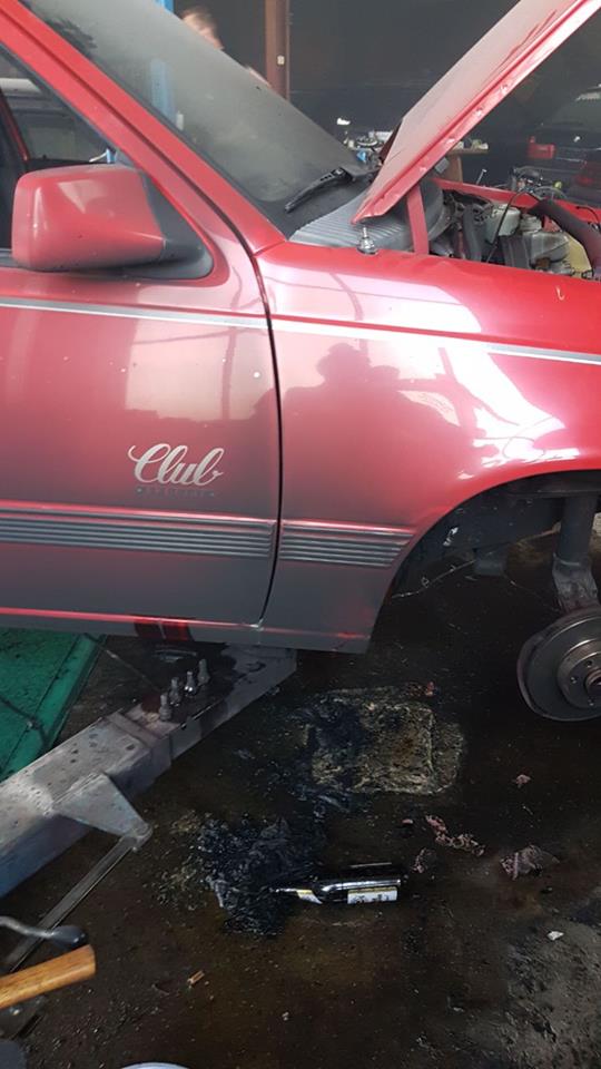 Für den TÜV fehlen nach einer ersten flüchtigen Inspektion die hinteren Dämpfer, Querlenkeraufnahme schweißen (Rep. Blech liegt im Kofferraum) und wieder zusammenbasteln.