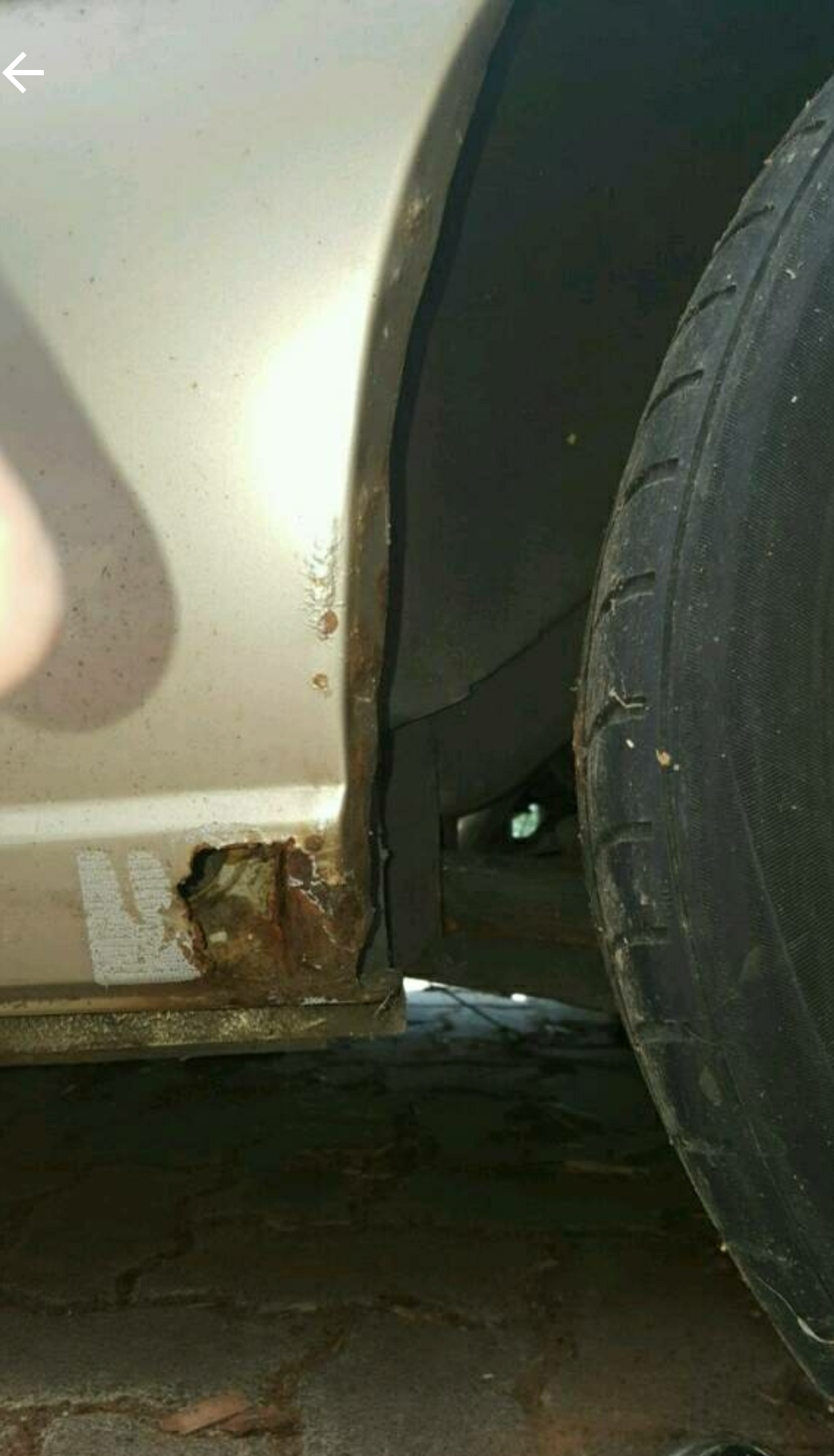 Vom Zustand her steht er ziemlich gut da. Einzig am rechten Radlauf und die Ecken Schweller/Radläufe sind durch.