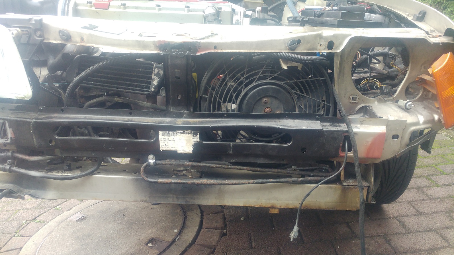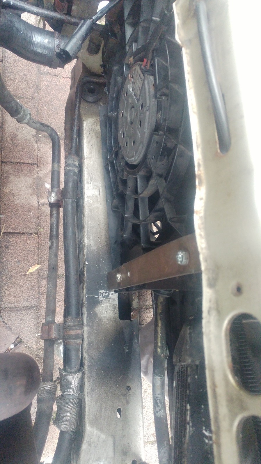 Habe am Wochenende noch meinen Kat verbaut und heute noch für den Lüfter eine Halterung gebaut. Der Lüfter sitzt vorm Kühler und soll ihn dann anblasen.