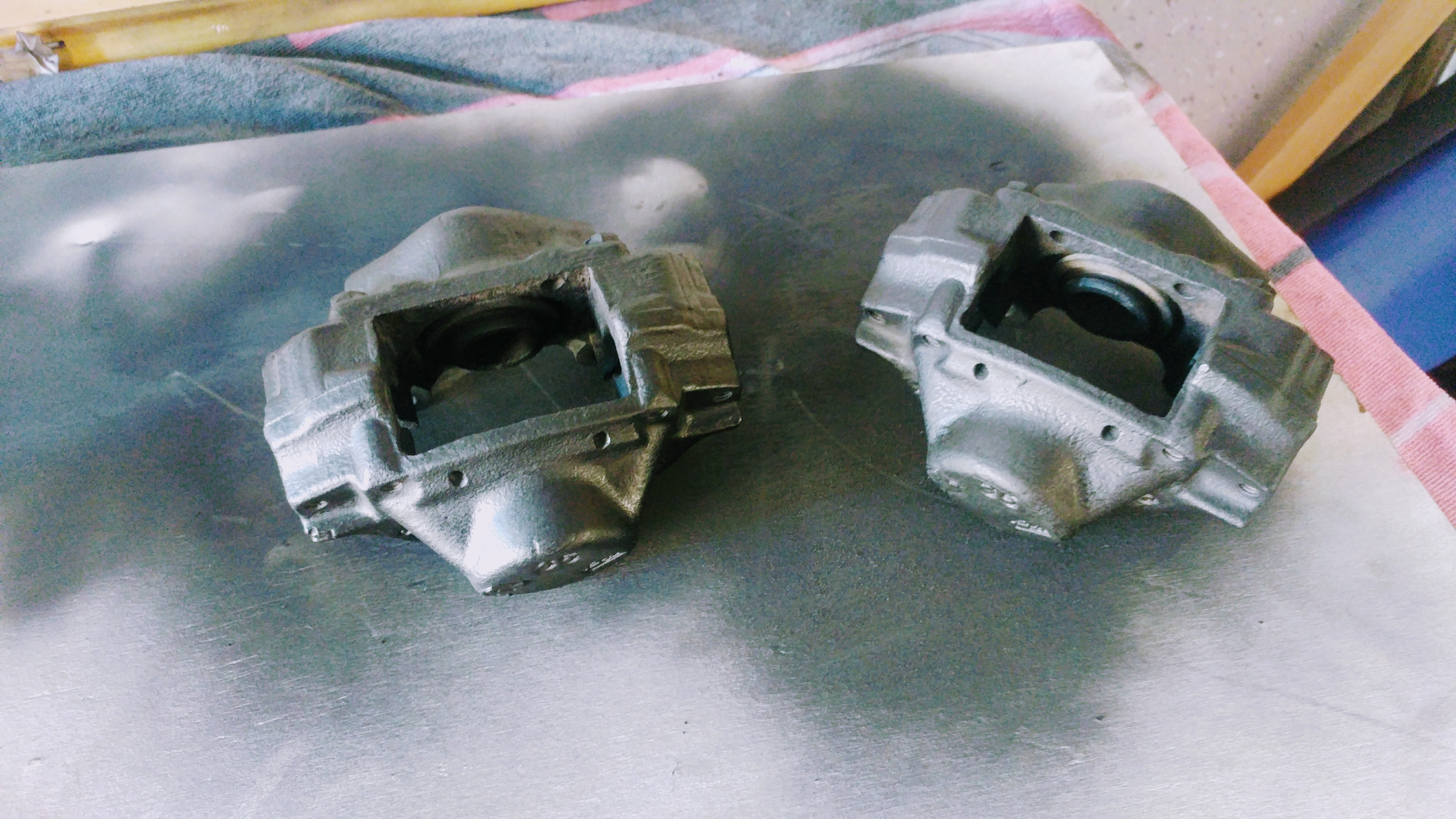 Heute meine Sättel noch lackiert. Bremsleitungen muss ich mir noch bördeln und die Stabis lackieren.