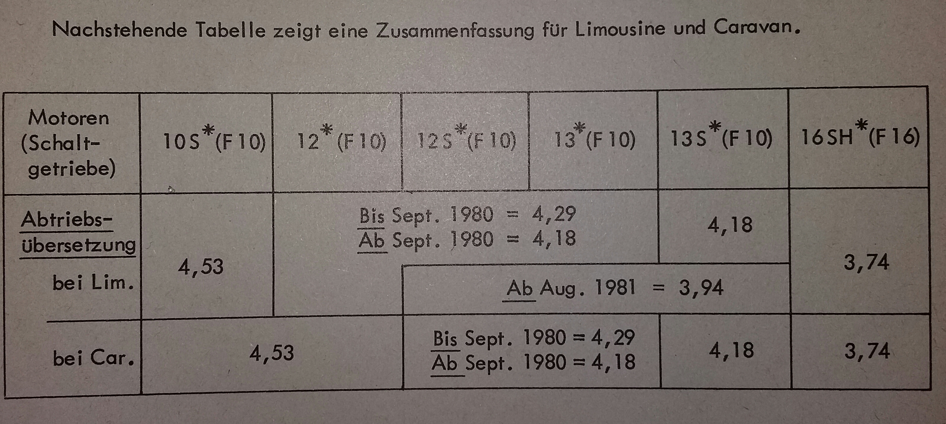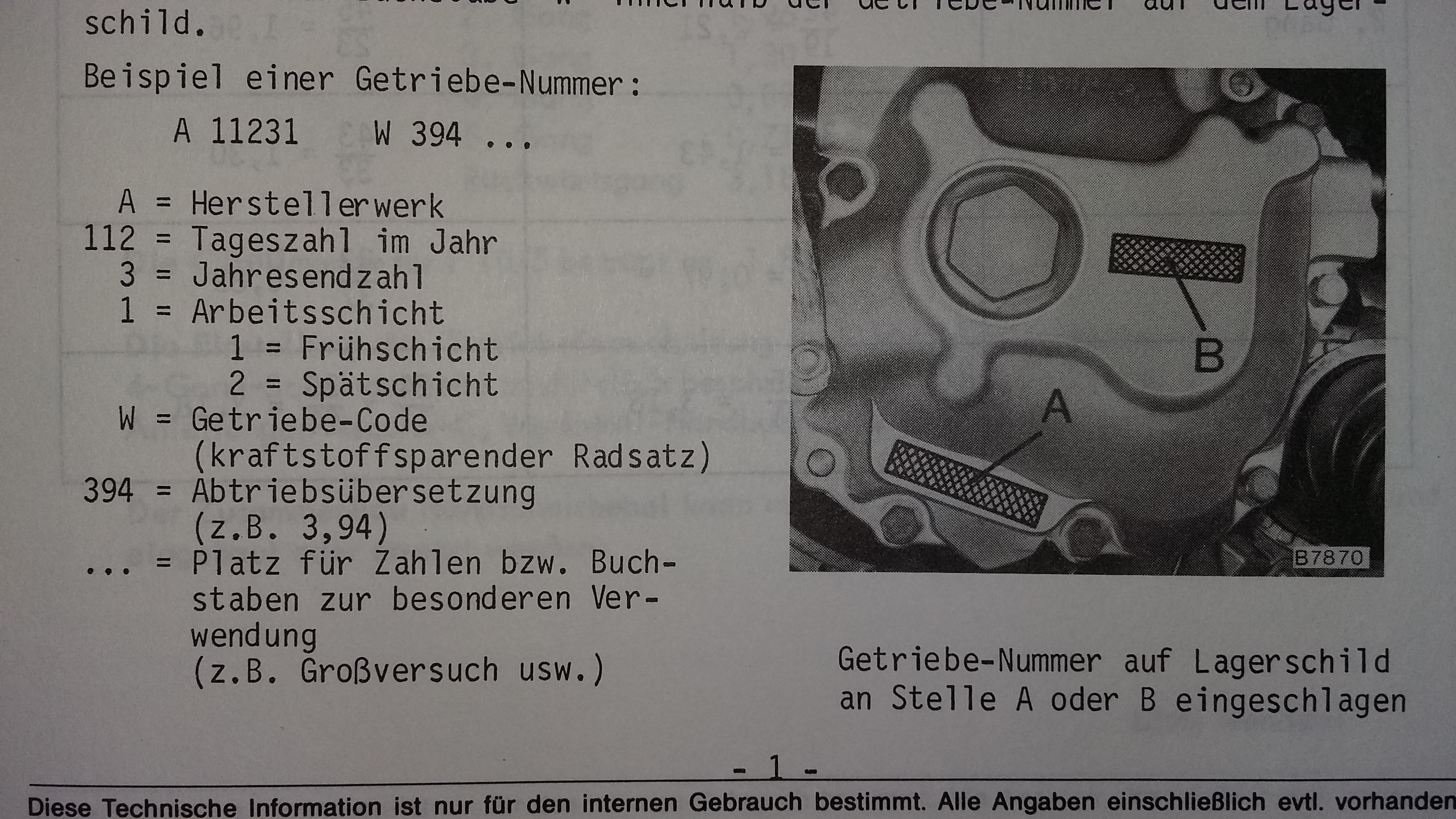 Dazu folgenden Hinweis, als äußeres Kennzeichen für einen kraftstoffsparenden Getrieberadsatz dient der Buchstabe "W" innerhalb der Getriebenummer, siehe dazu das genannte Beispiel im Bild.
