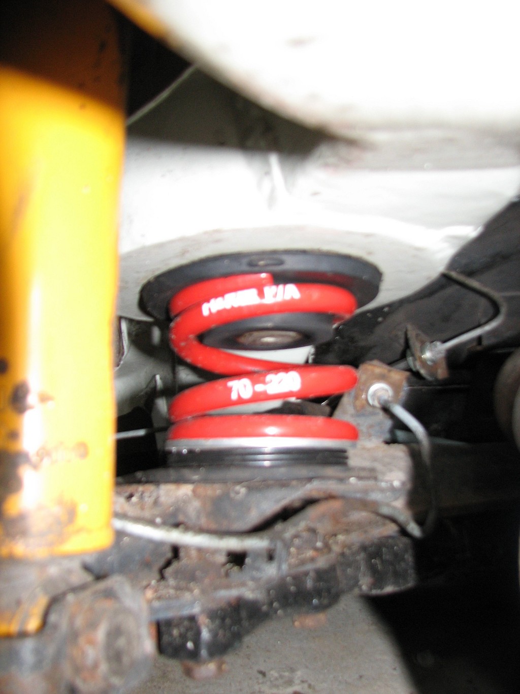 Mein Fahrwerk liegt bei ca. 160N/mm, d.h. ca 16KG drücken die Feder 1mm zusammen (also das 3-5-fache "normaler" Tieferlegungsfedern)