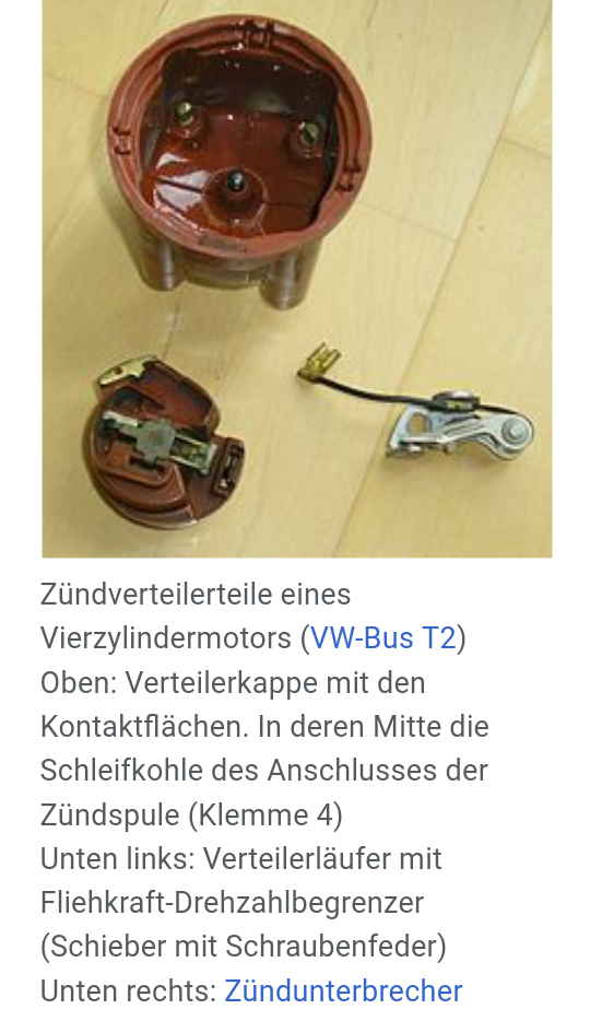 #48 Alles anzeigenHm, ein "....Zündverteiler mit integrierten Entstörläufern und Drehzahlbegrenzern ausgestattet..", woran kann ich das erkennen,das ein Endstörläufer oder Drehzahlbegrenzer defekt sind?
