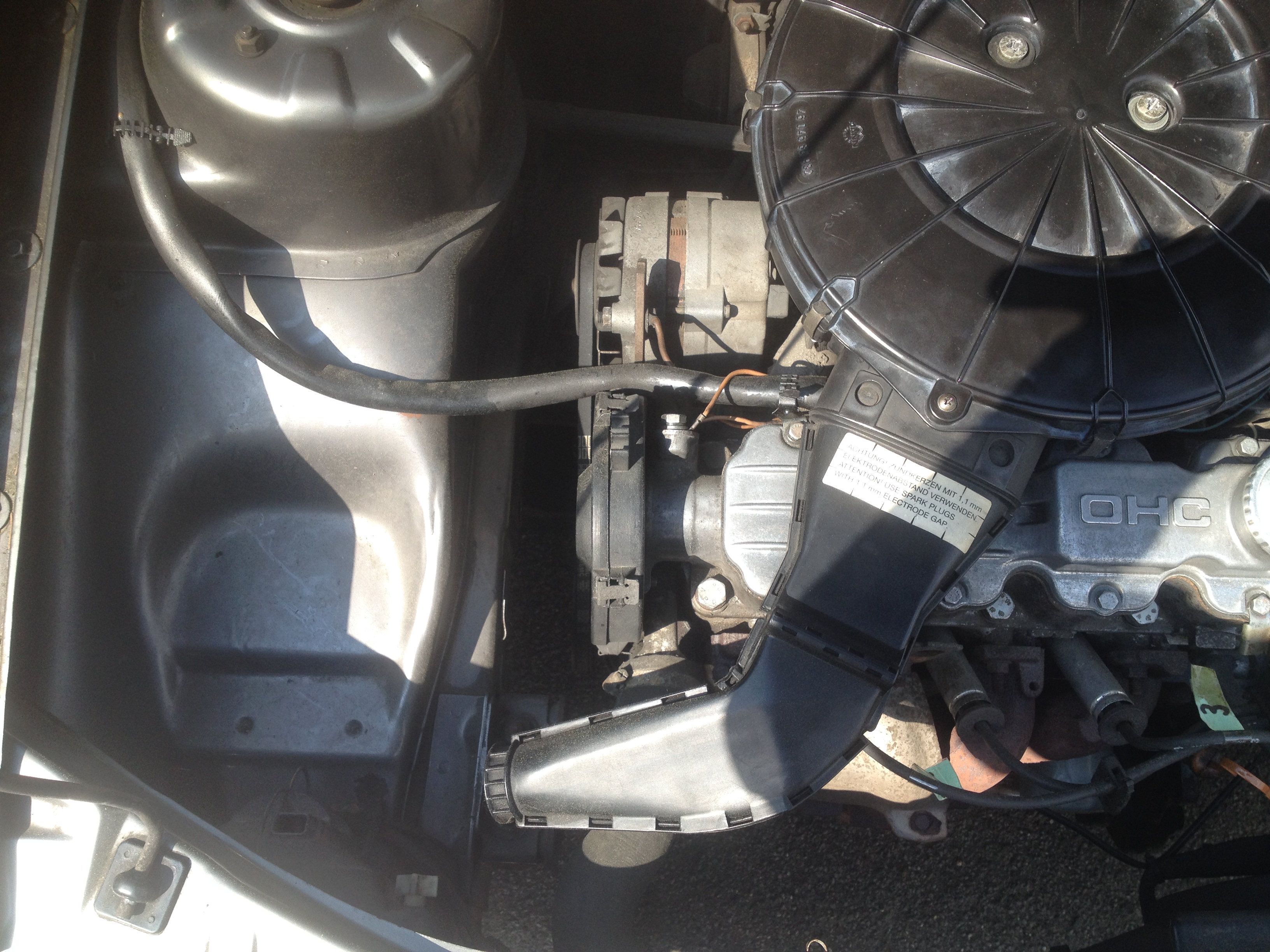 So hier sind ein paar Fotos vom Motor selbst. Einen runden Stecker habe ich im Motorraum nicht. Die Montageschrauben der Zündspule sind o.k.-ich hatte sie ja mal zum testen ausgetascht. Ebenfalls der breite Anschluschstecker mit Klemme 1 und 15. ist o.k., keine Roststelle.Eine ersatz Zündspule wurde bereits mal eingesetzt. Ohne erfolg.