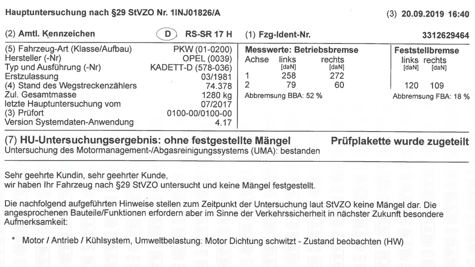 Mein TÜV Prüfer ist noch vom alten Eisen begeistert und kennt sich damit aus.