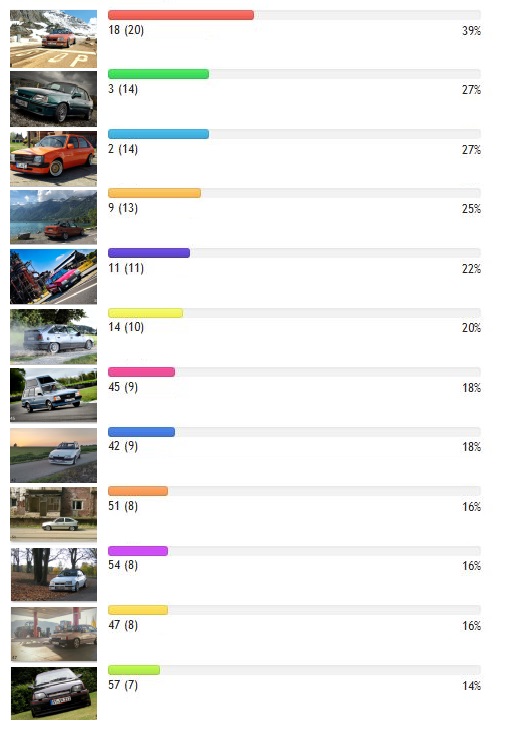 Ein großes Danke an die 51 Forumsmitglieder, die aus den 60 Bildern die 12 Kalenderbilder für nächstes Jahr über das Voting ausgewählt haben. Durch die Teilnahme mit 3 Bildern haben wir diesen Berg an Kadetten bekommen. Es war wirklich schwer trotz der 5 Stimmen je Mitglied. Mit nur einem doppeltem "orangem" Cabrio, das zum Glück mal von vorn und dann von hinten drauf ist