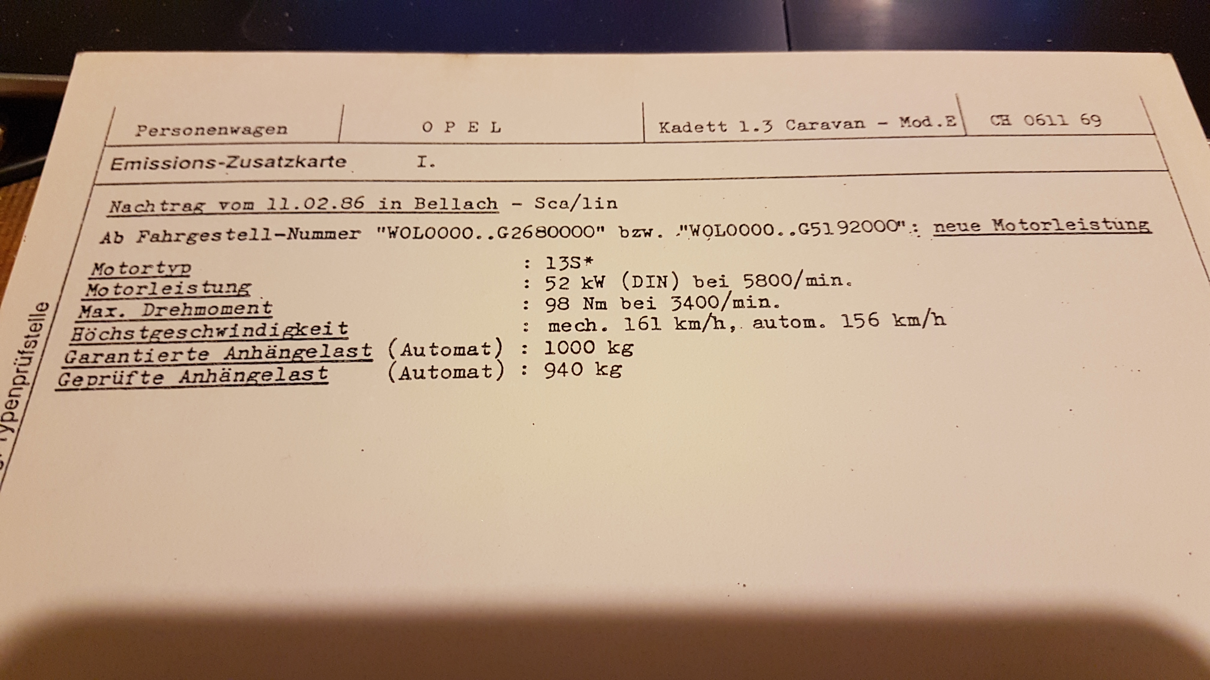 beim Kadett E gibt es einen Eintrag von 52 KW... aber erst ab 1986..