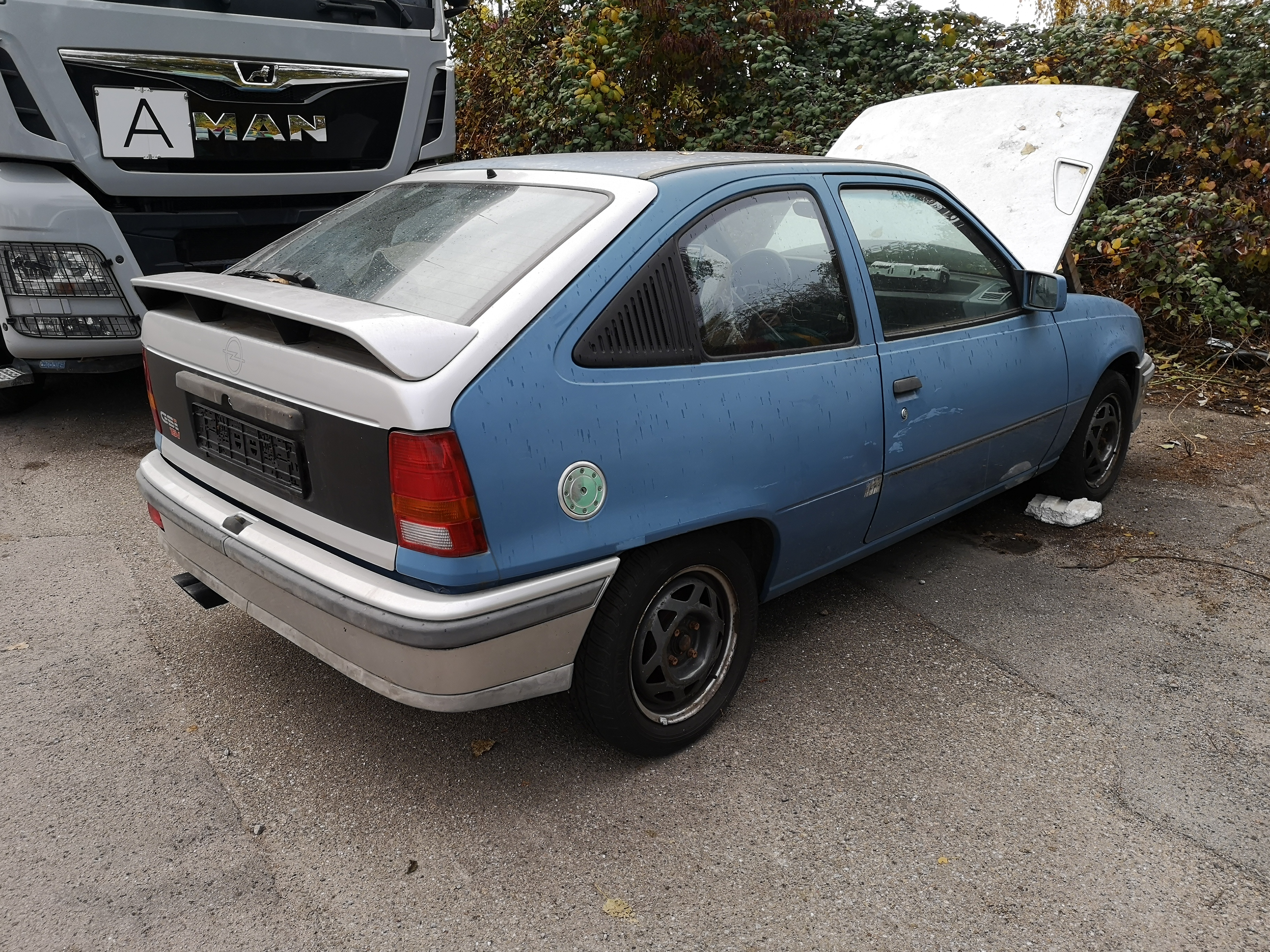 Karosserie ist für einen Kadett rost frei. Unglaublich! Natürlich das eine oder andere pickelchen und unten am radlauf is n 2 Finger großes Loch, aber keine üblichen faustgrosen Löcher oder Fred Feuerstein Fussräume.