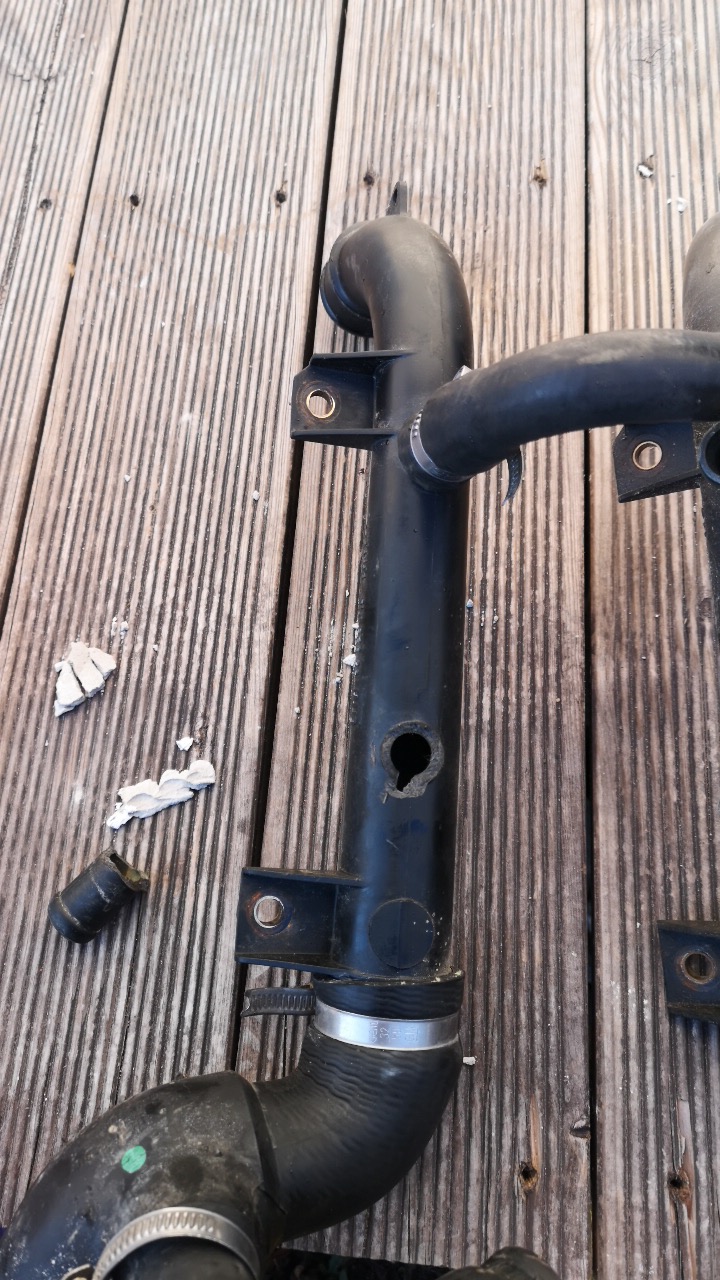 Erstmal musste ich das Wasserrohr ersetzten. Wenn Plastik alt wird