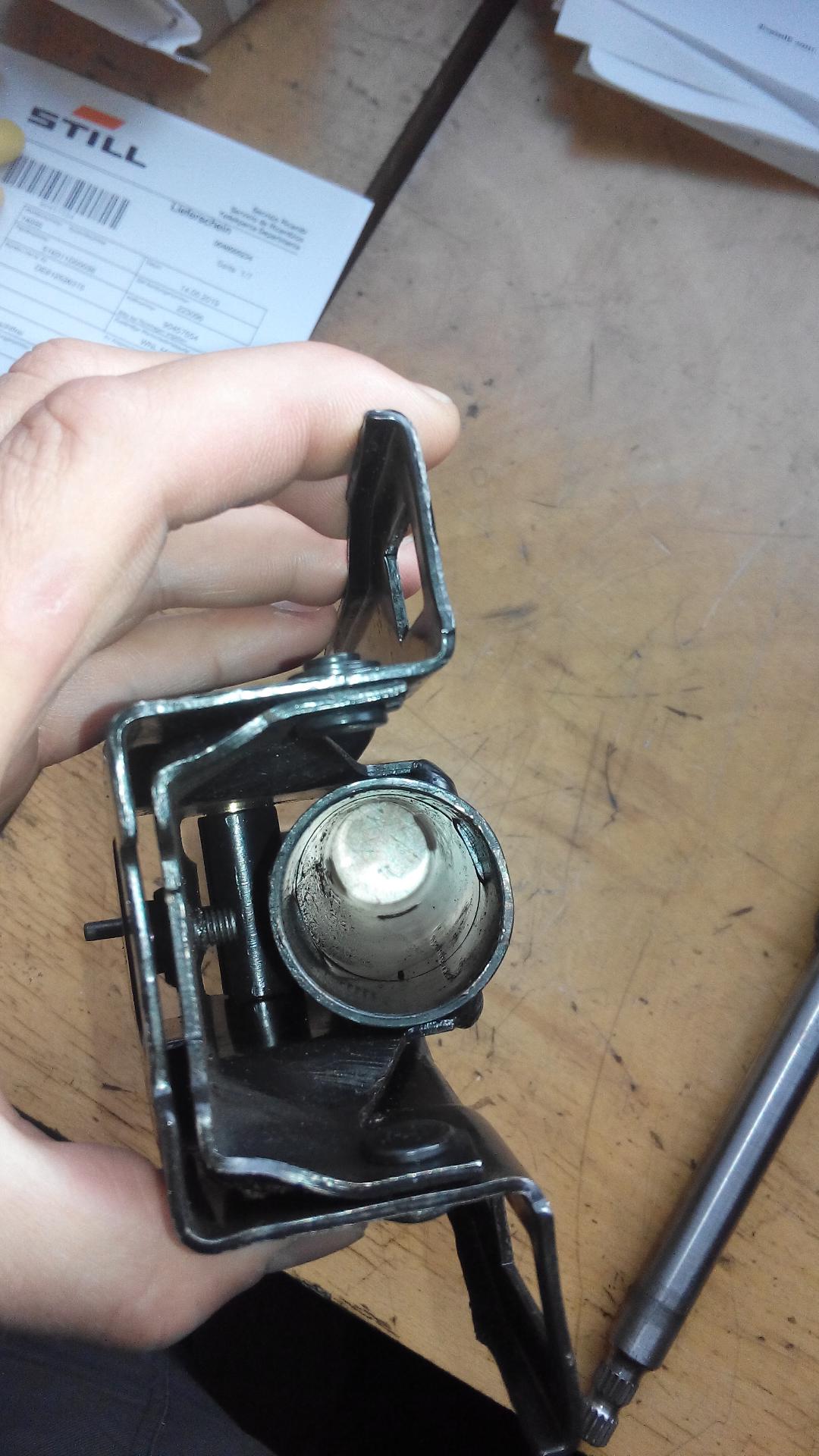 Dadurch hat sich das Nadellager in die Lenksäule verabschiedet und blockiert. Ich habe also die Lenksäule ausgebaut und zerlegt.