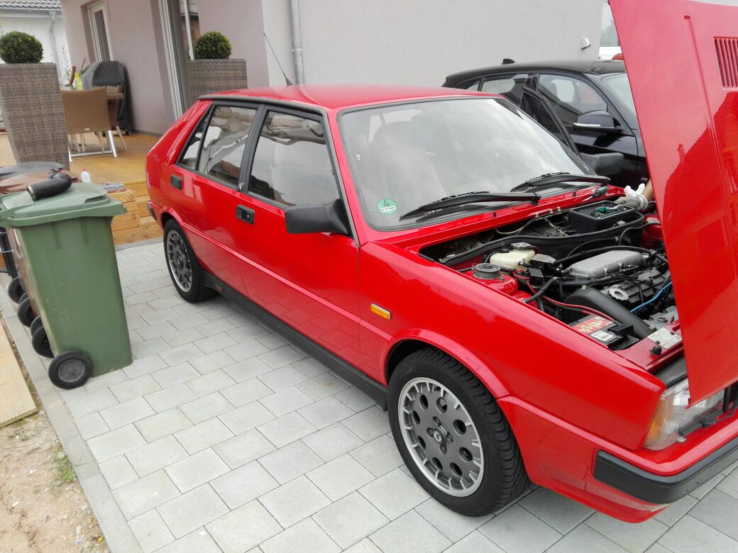 Das Auto stand und steht von der Karosse sehr gut da. Es war mal einen Scheunenfund der jahrelang in einer Scheune stand und vom Vorvorbesitzer für viel Geld wieder auf die Straße gebracht wurde. Die Probefahrt war ganz okay allerdings fuhr der Delta nur mit 0,5 bar Ladedruck und ging nicht in den Overboost, die Kupplung war völlig fertig und der Motor lief nur auf 3 Töpfen....ich war dennoch angetant und verliebt - also gekauft und nach Hause.