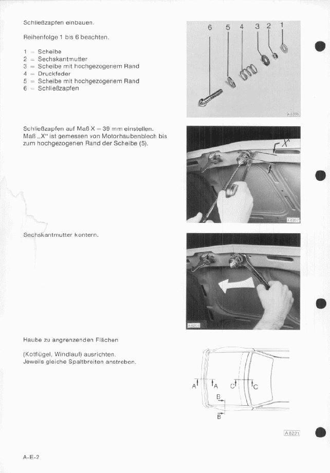 Naja, passend machen ließe sich dass schon, schließlich befinden sich an den Befestigungspunkten der Haubenscharniere zur Haube hin Langlöcher zum Einstellen des Abstandes zwischen Schließzapfen und Schloßträger.