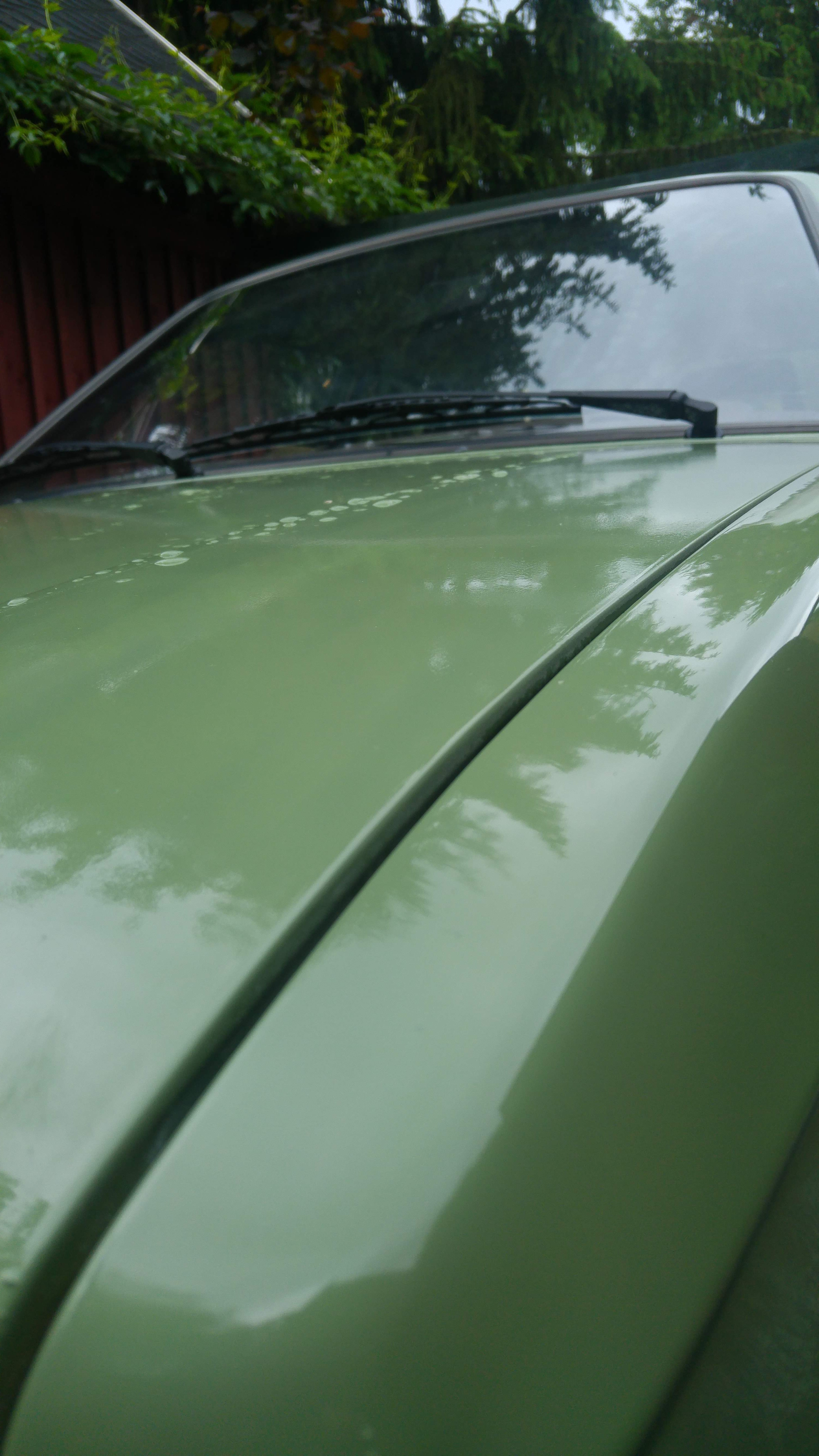Ansonsten habe ich jetzt mal probiert wie groß die Chancen sind, den alten "Lack" zu retten. Habe den Kotflügel mit 400er nass bis auf 12000 geschliffen und dann poliert. Es funktioniert ganz gut, aber am Ende sind an jedem Karosserieteil irgendwelche kleinen Fehlstellen im Lack, die man ohne eine Neulackierung nicht wegbekommt.