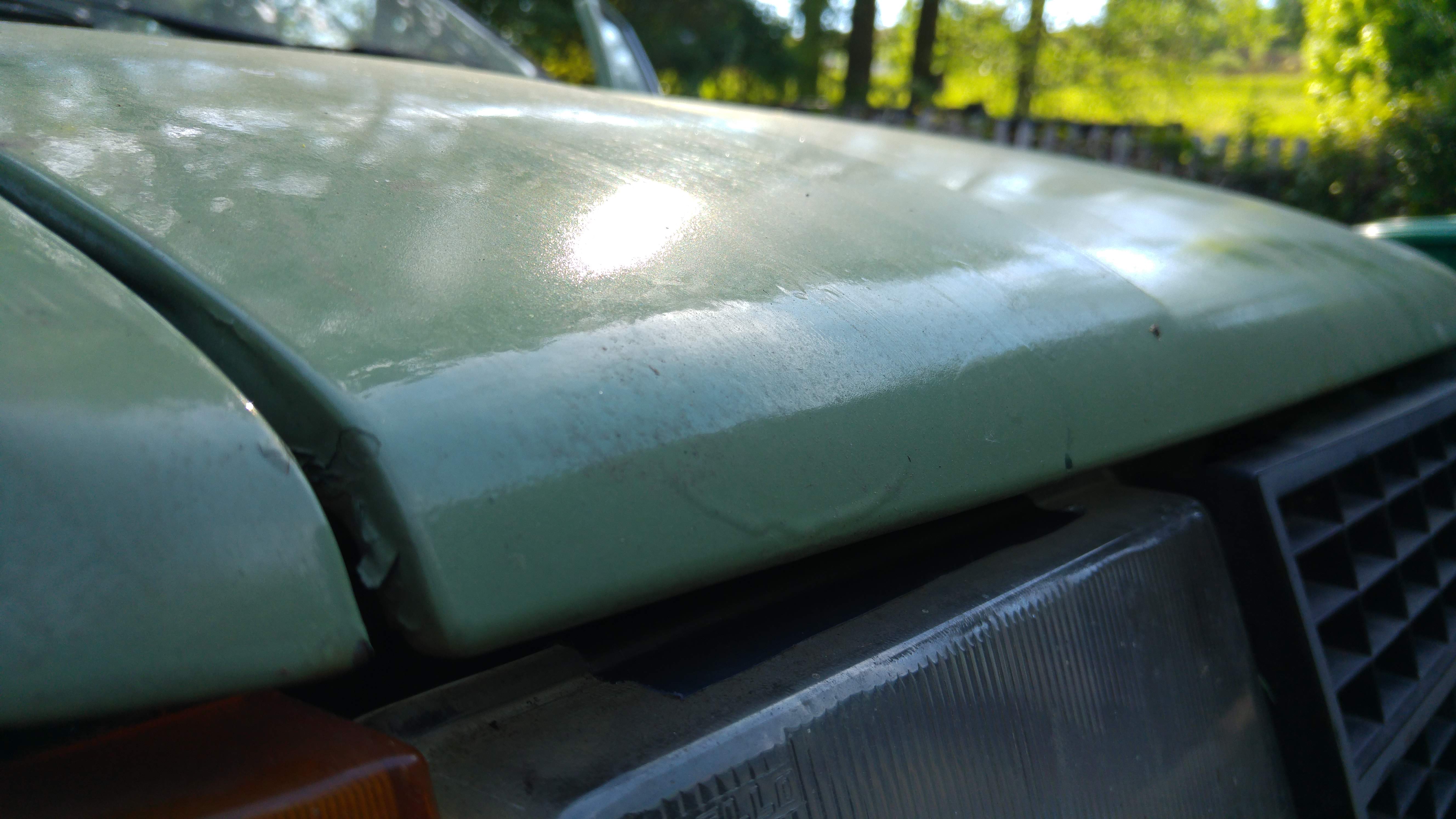 Die Haube habe ich mir als Probefläche für eine Neulackierung ausgewählt. Um nach den Problemen bei dem Lack am Combo mit den unterschiedlichen Farbtönen einfach vorzubeugen.