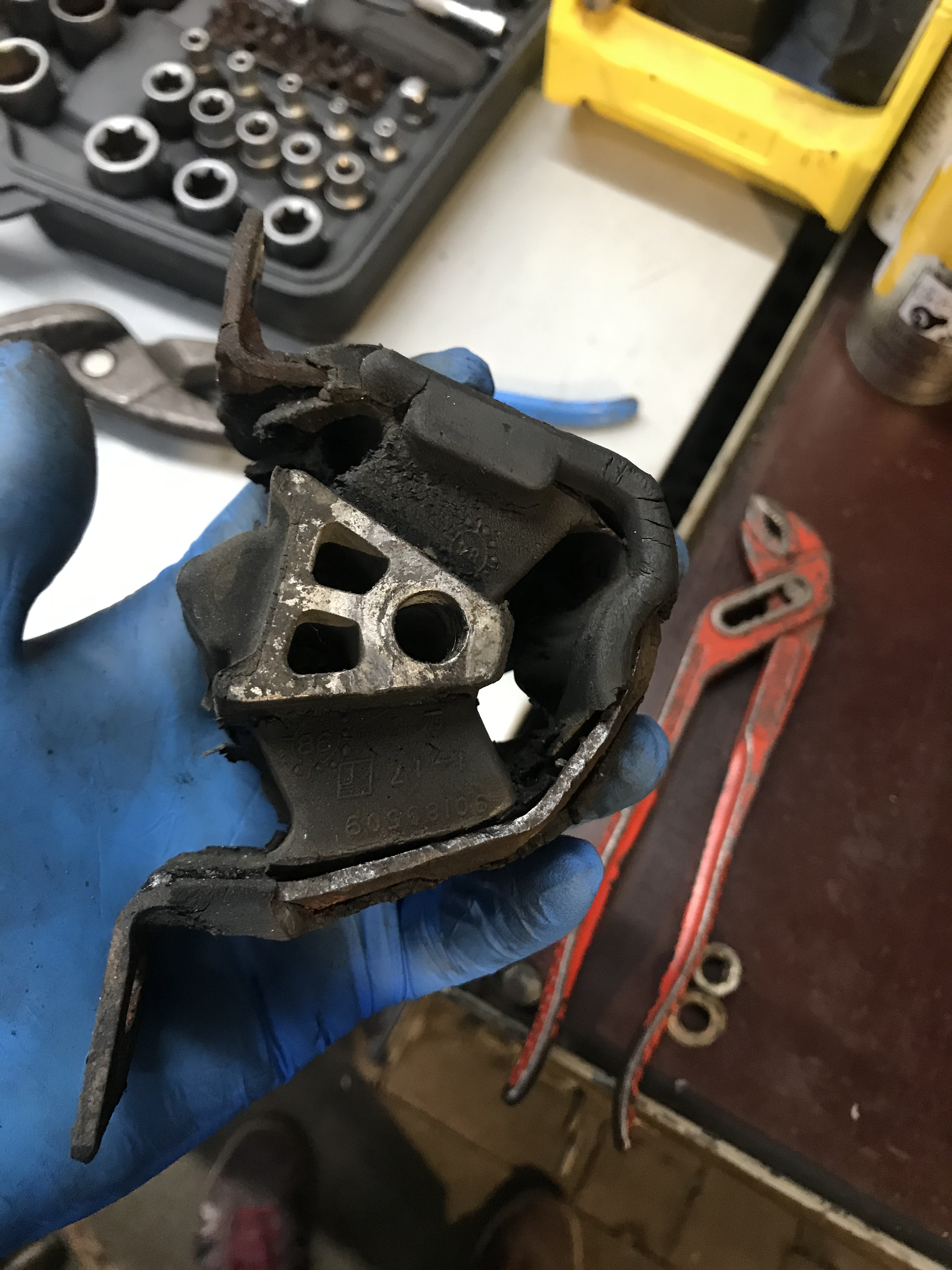 Jetzt hängt der Motor höher und der Auspuff schlägt an
