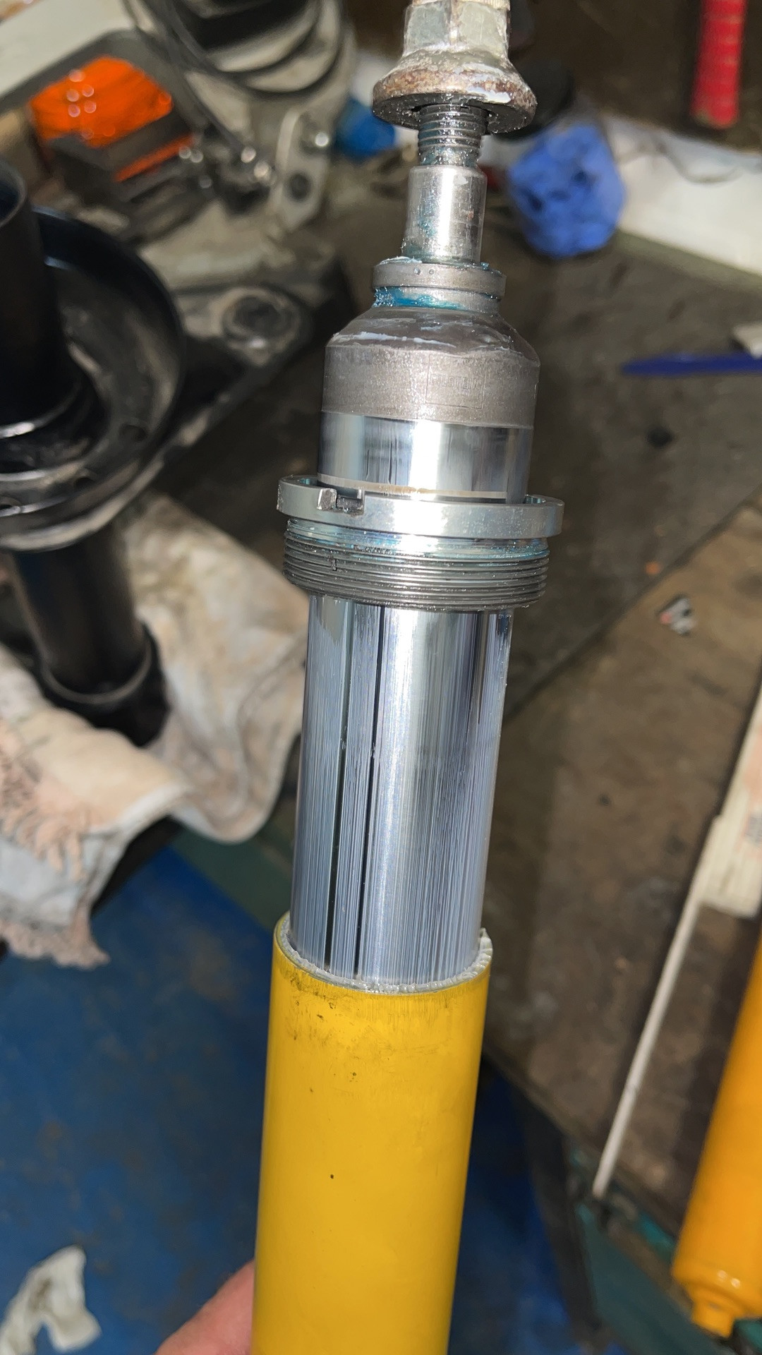 #689 Hab das federbein ohne Feder und staubkappe zusammen gebaut, ist schon bisschen tiefer aber immer noch kacke.