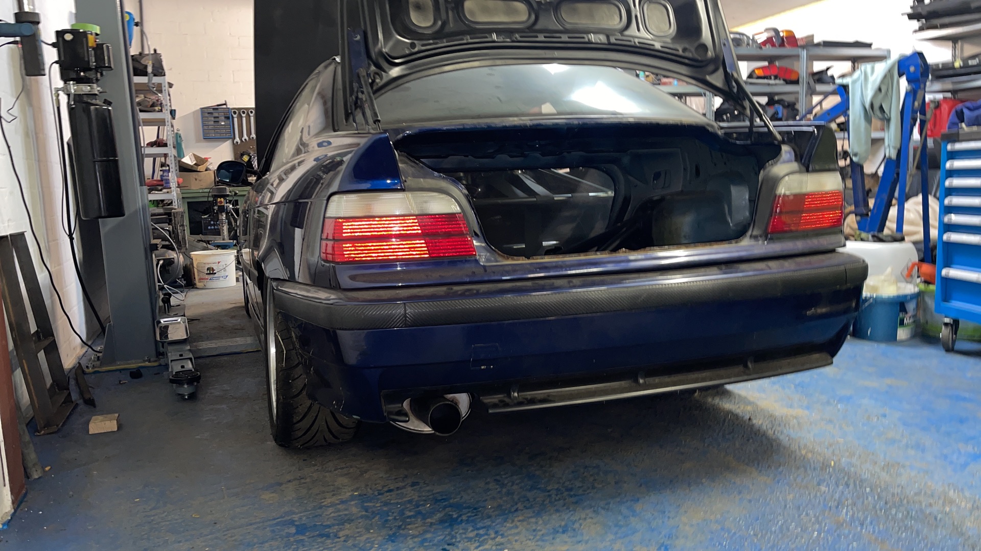 Beim e36 Auspuffanlage geändert und ein Schalldämpfer mehr eingeschweißt