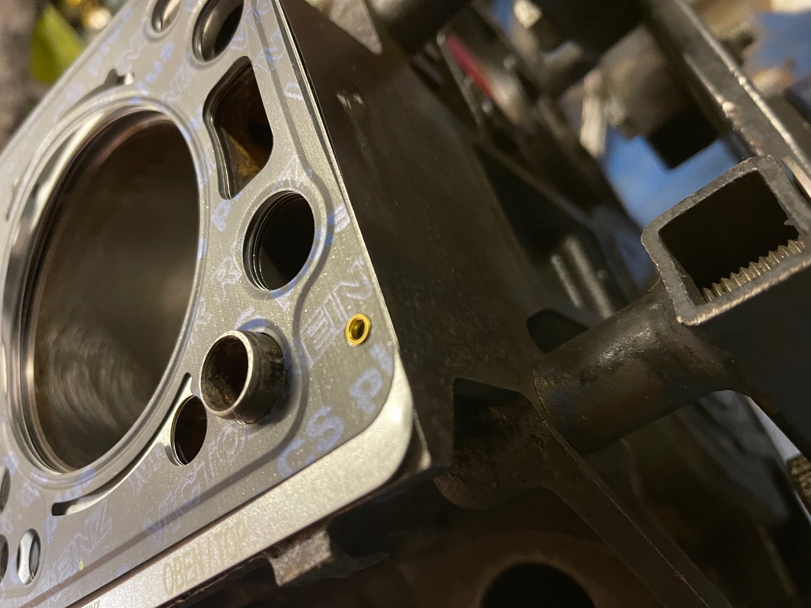 Möchte nicht neunmalklug sein, aber an der Dichtung befindet sich eine Art von Dichtlack welcher beim erstenmal erhitzen verrinnt und somit dicht macht! Diese Dichtung ist immer trocken einzubauen! Deshalb müssen die Dichtflächen auch feiner geschliffen werden als bei der herkömmlichen Feststoff - Dichtung!